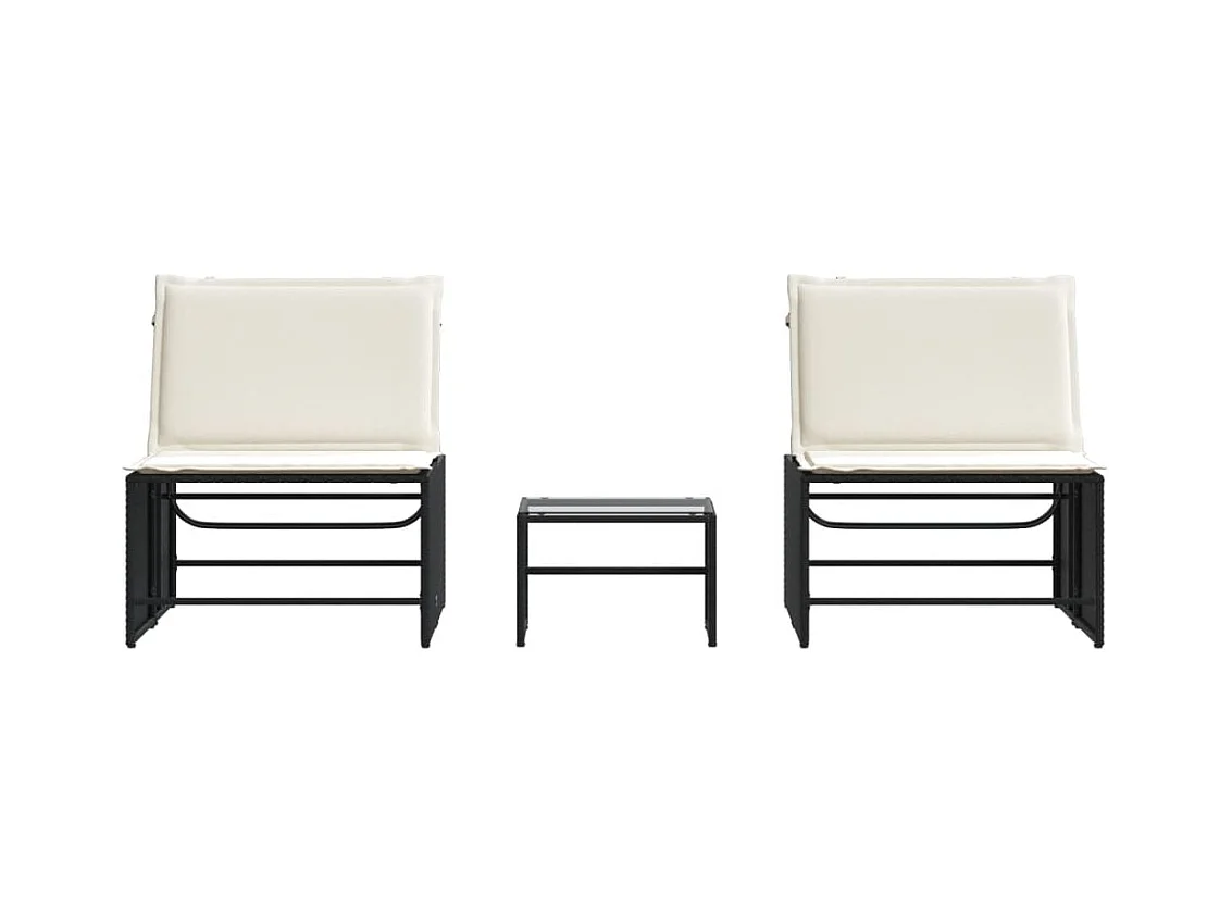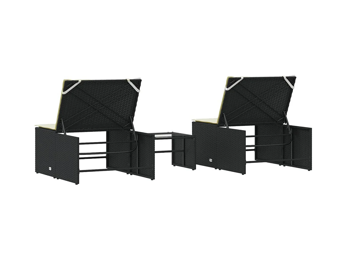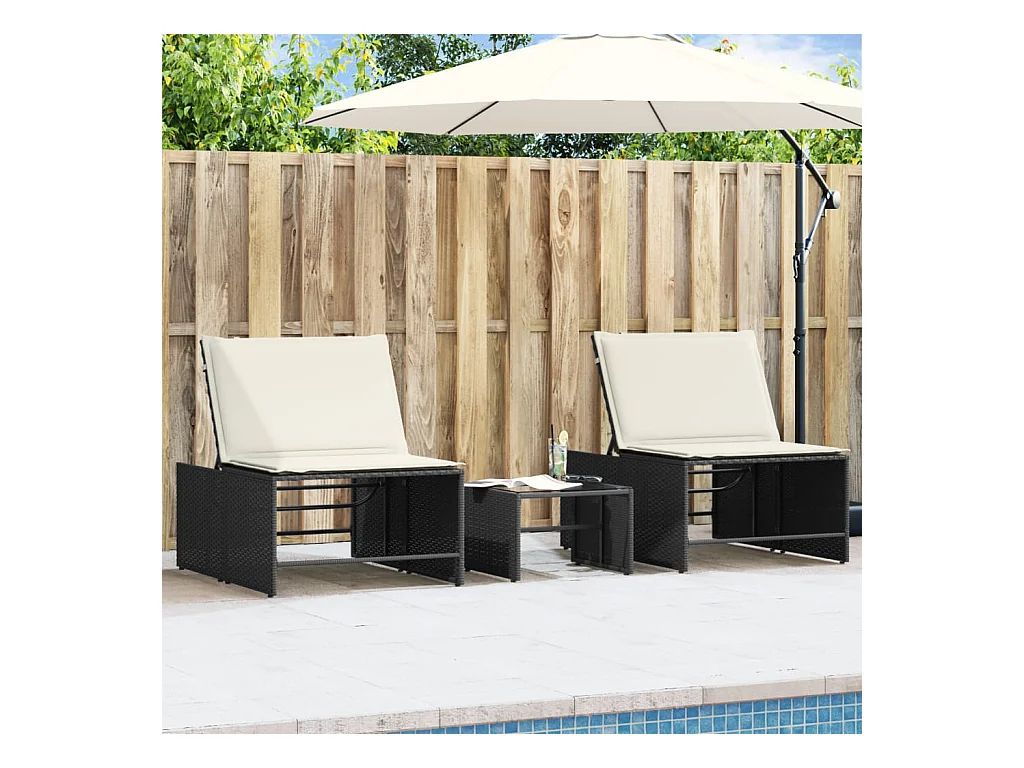 Ensemble de chaises longues avec coussins 3 pcs noir poly rotin