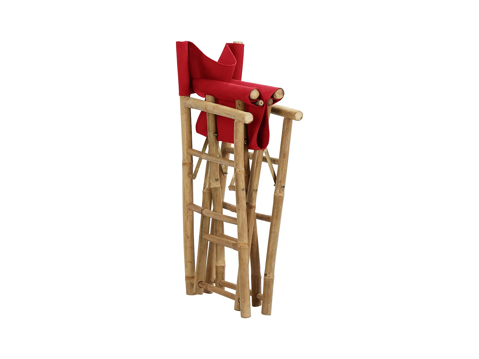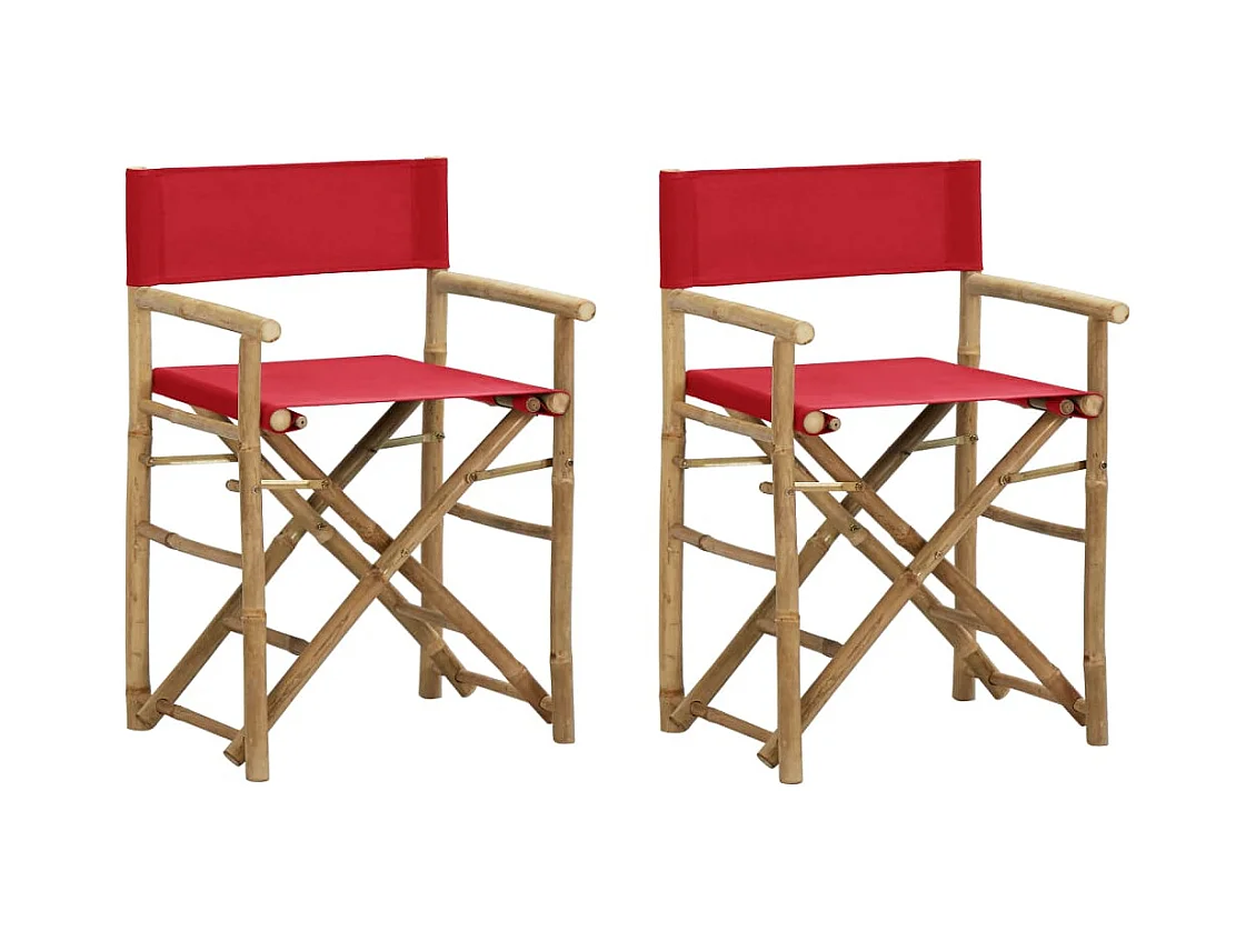 Chaises pliables de directeur 2 pcs Rouge Bambou et tissu
