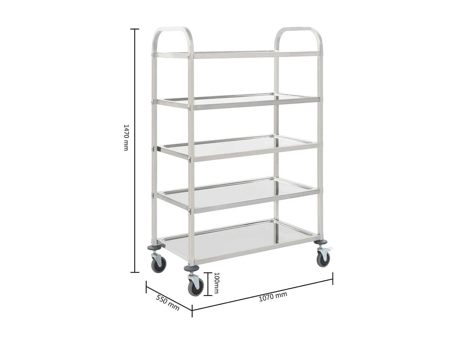 Chariot de cuisine à 5 niveaux 107x55x147 cm Acier inoxydable