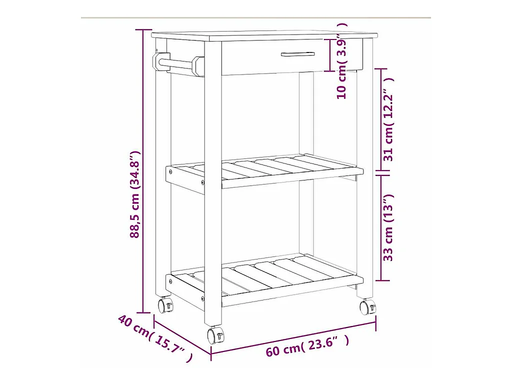 Chariot de cuisine MONZA 60x40x88,5 cm bois massif de pin