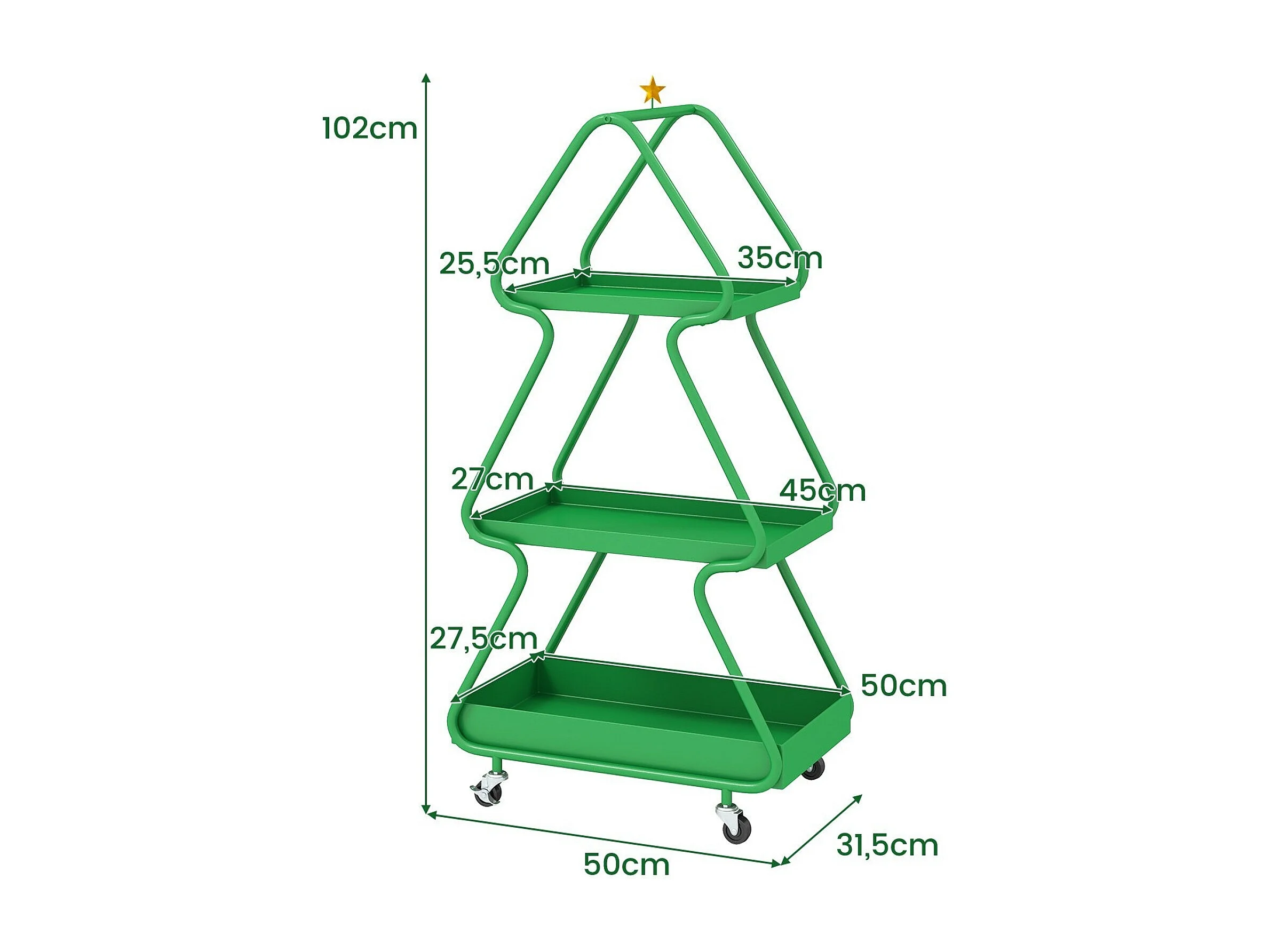 Chariot de service à 3 niveaux en sapin de Noël-from Chariot à roulettes avec étoile Chariot de cuisine sur roulettes