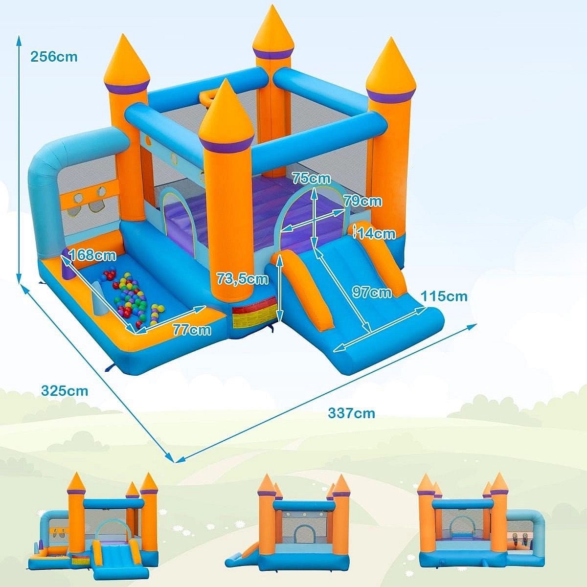 Château Gonflable 5 en 1 avec Ventilateur Toboggan Maison de Saut Gonflable avec Piscine à Balles Panier de Basketball 50 Balles Océaniques Charge 90kg