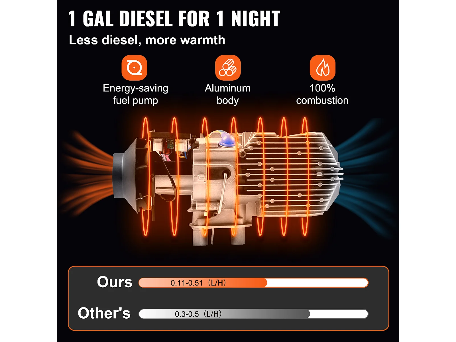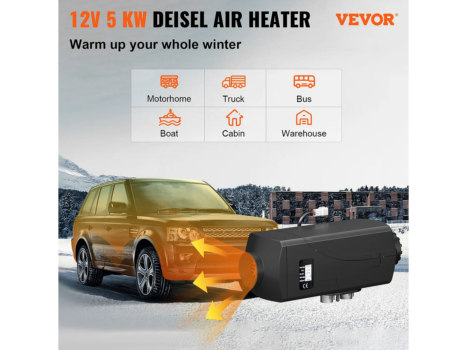 Chauffage à Air Diesel SucceBuy 12V 5KW pour RV, Camper, Remorque, Camions, Bateaux, Commutateur LCD