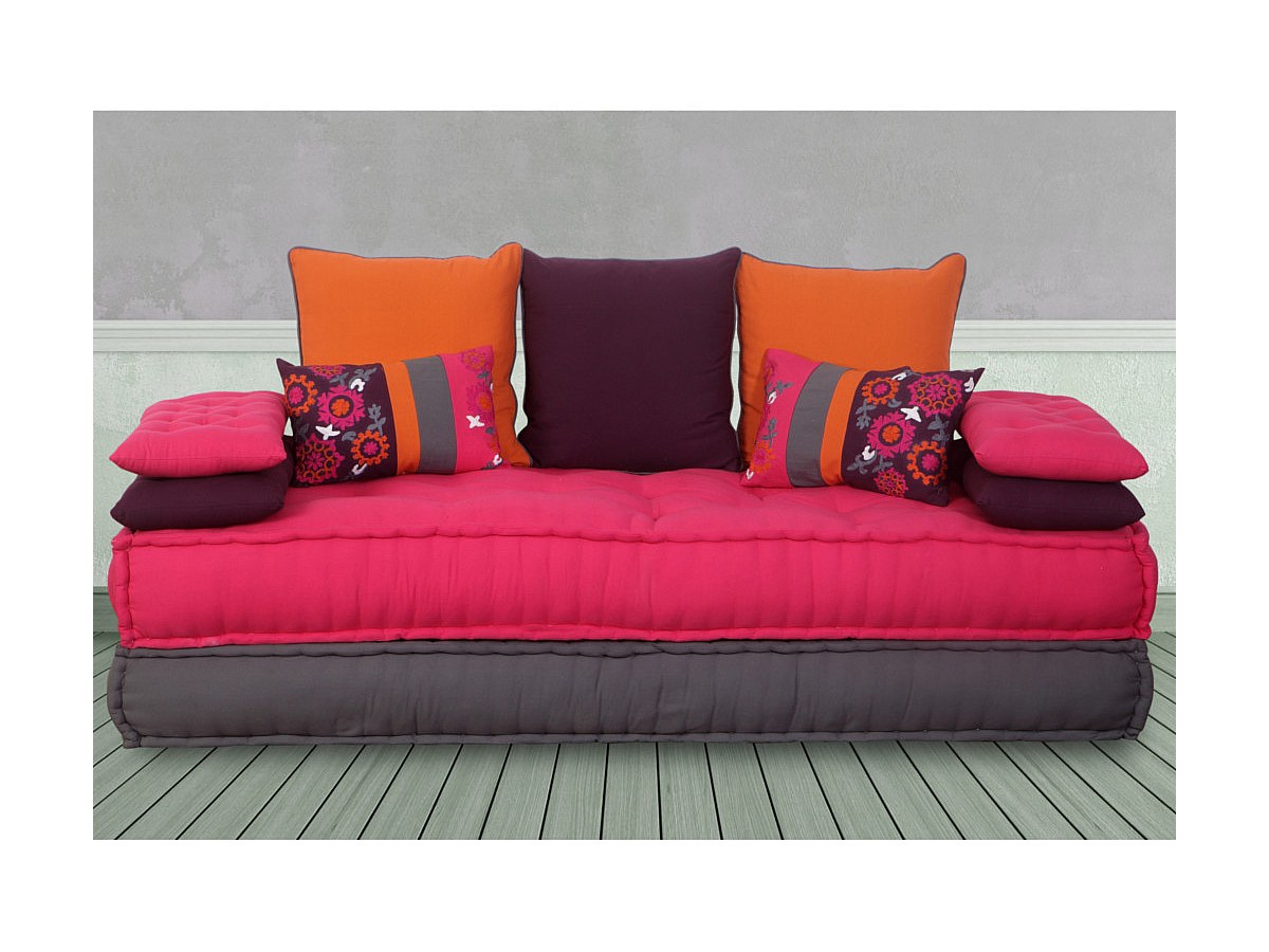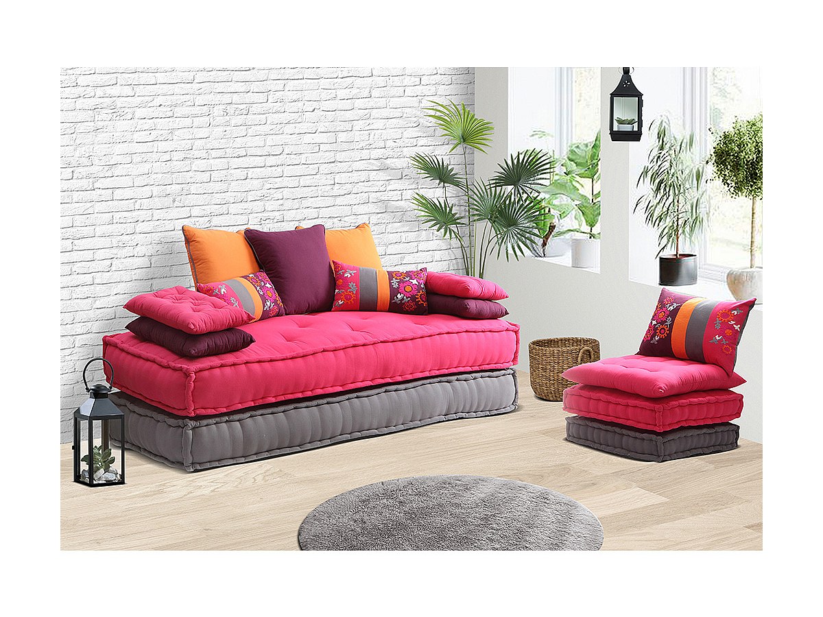 Canapé convertible 3 places : ce canapé est composé de 2 matelas de sol et 3 coussins de dossier à disposer comme vous le souhaitez.