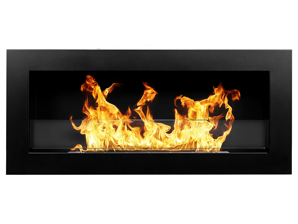 Cheminée à bioéthanol murale ou encastrable Livorno Black, L 90xP 12xH 40 cm avec vitre