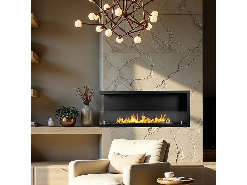 Cheminée d'angle intégrée au bioéthanol, bio-cheminée d'angle 120x45 SUTRI 120 SX