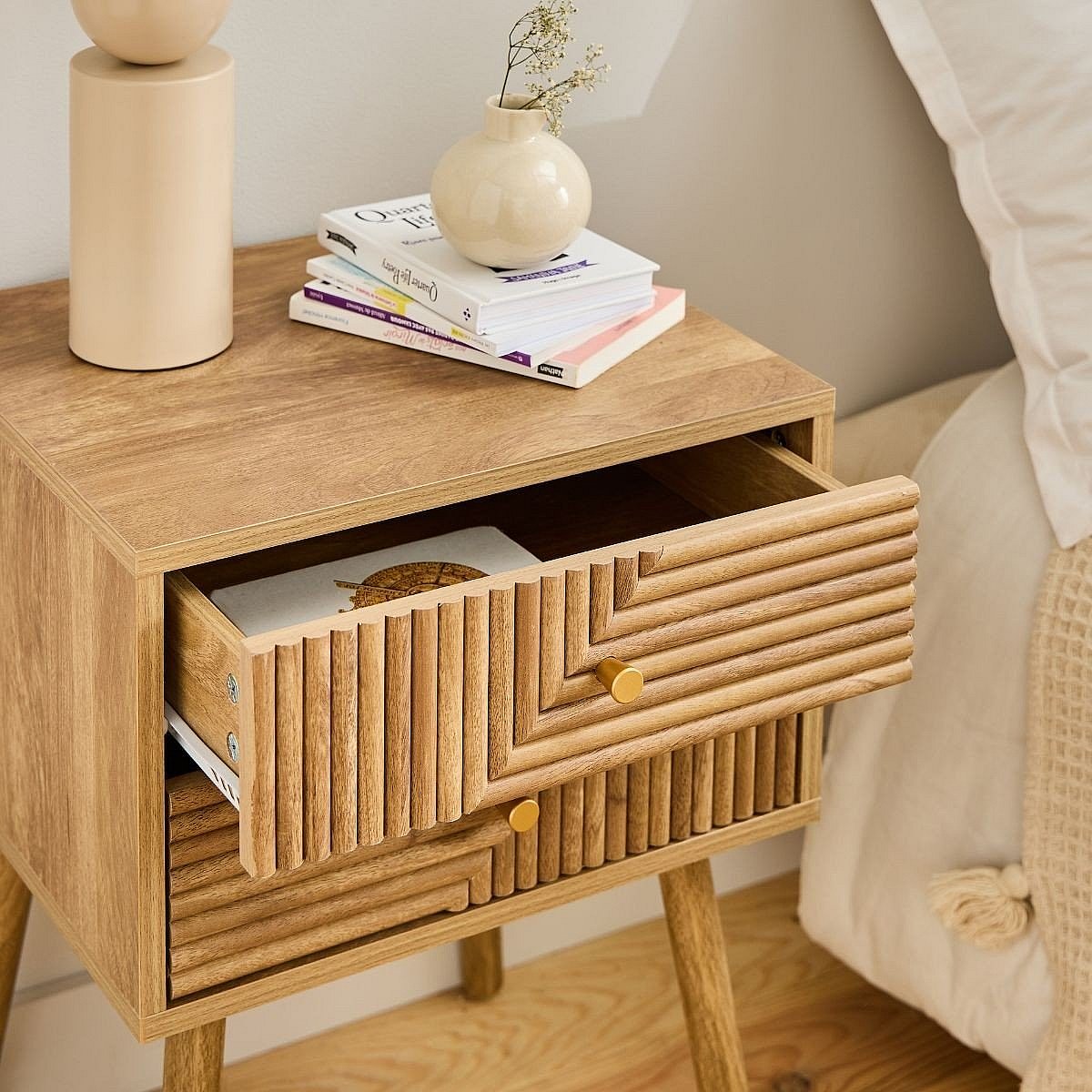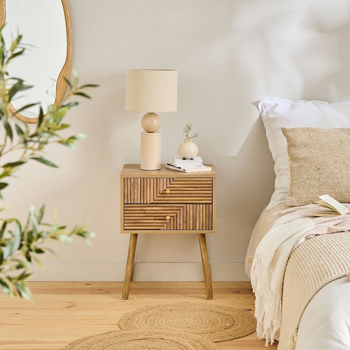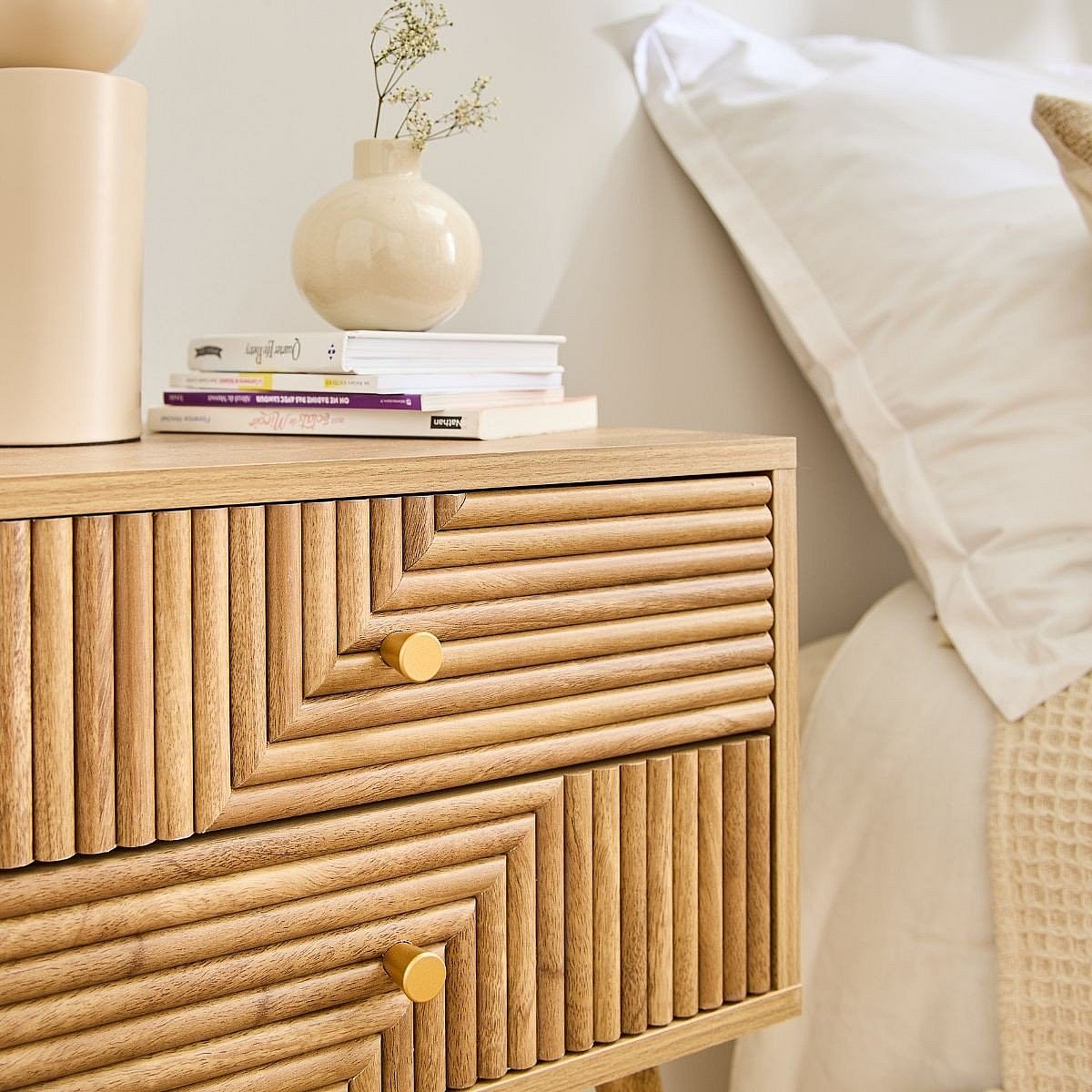 Chevet 2 tiroirs avec façades lamellées EDEN