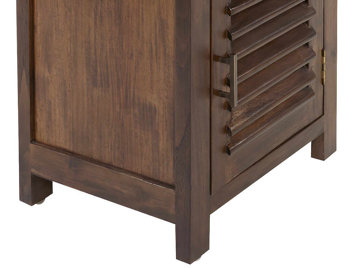 « Très beau chevet en bois exotique qui donne un style zen et chaleureux, de couleur foncé il s’accorde bien avec mes autres meubles çà et là clairs et foncés. Chevet de qualité avec une belle finition, sans défaut. Je suis très satisfaite. »