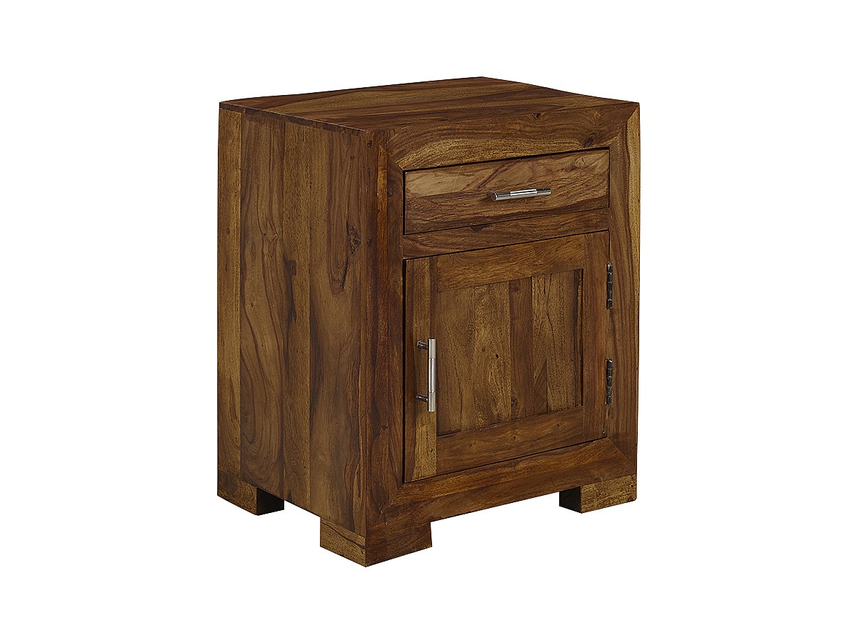 Table de chevet COPELIA - 1 porte et 1 tiroir - Bois de sheesham