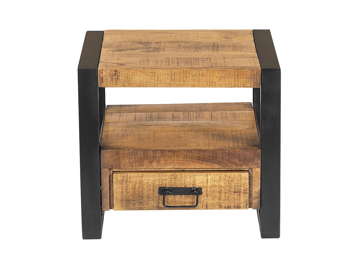 Table de chevet industrielle HARLEM - 1 tiroir & 1 niche - Bois de manguier & métal