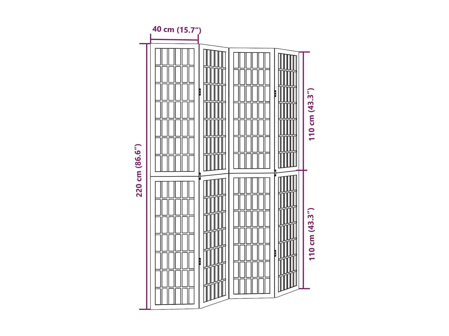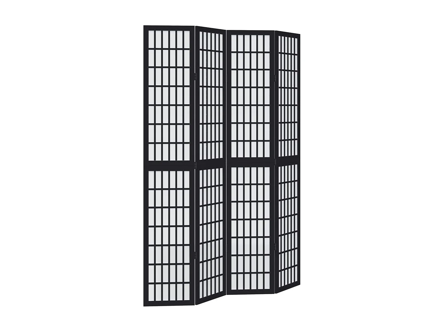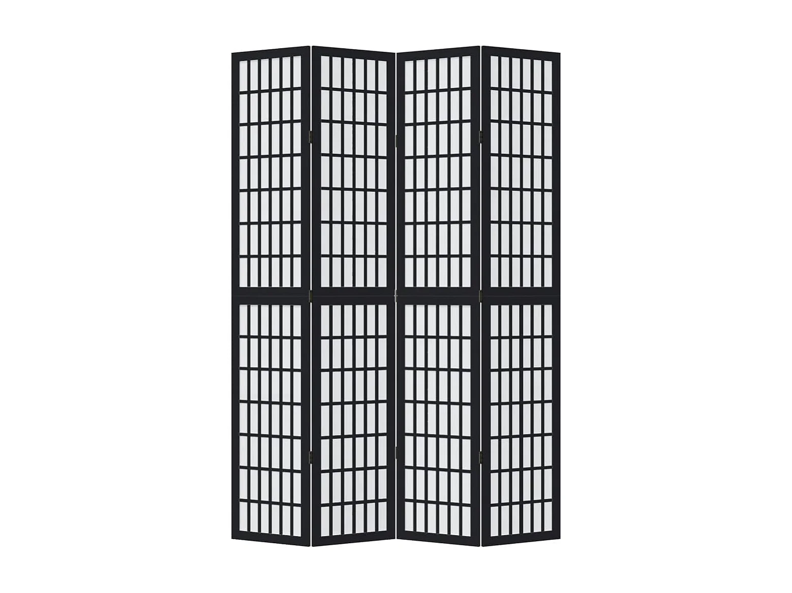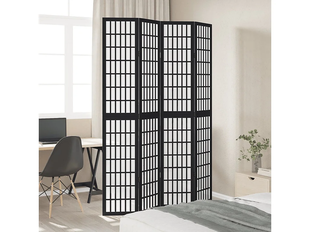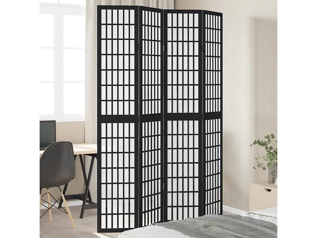 Cloison de séparation 4 panneaux noir bois de paulownia massif