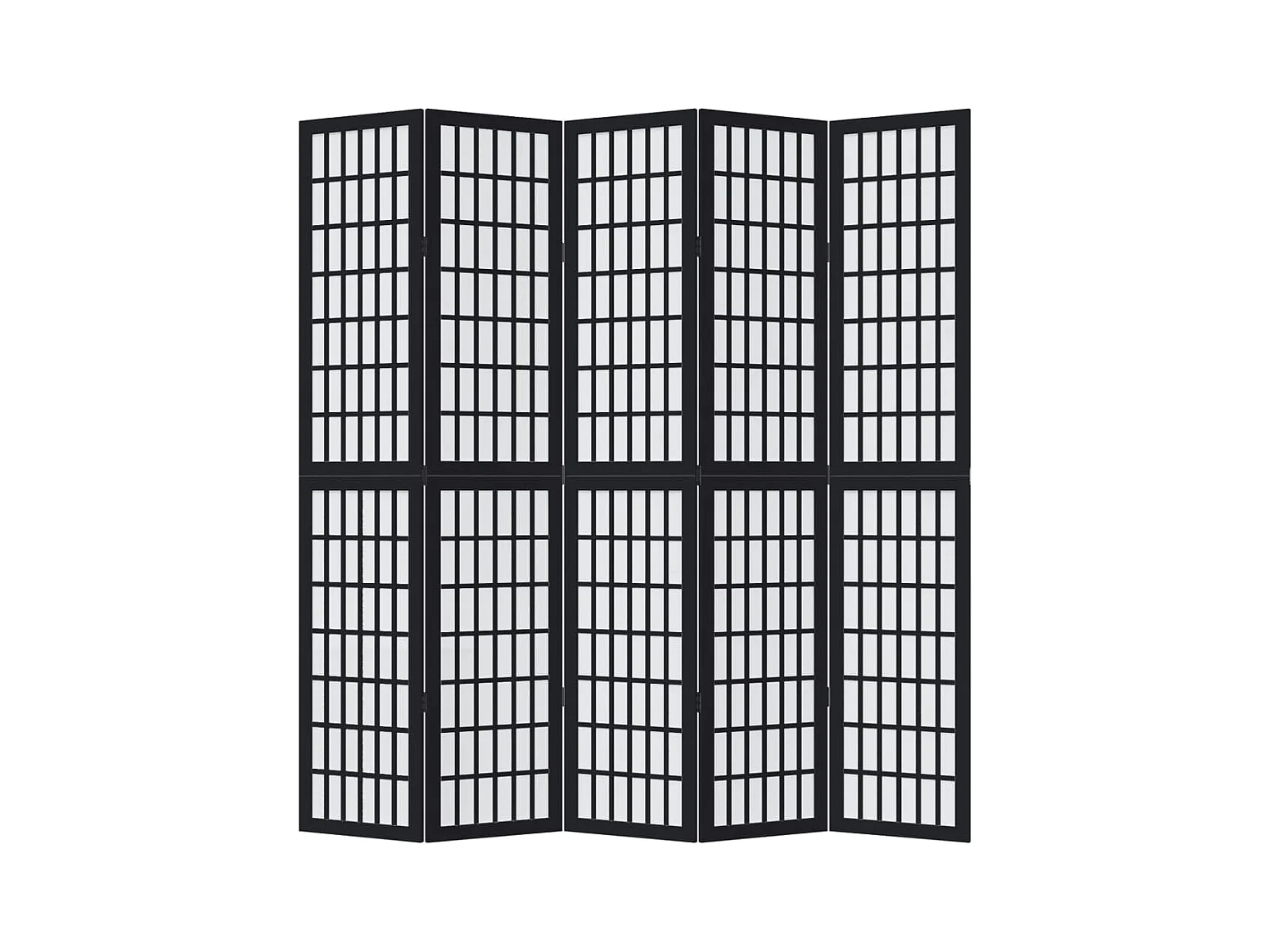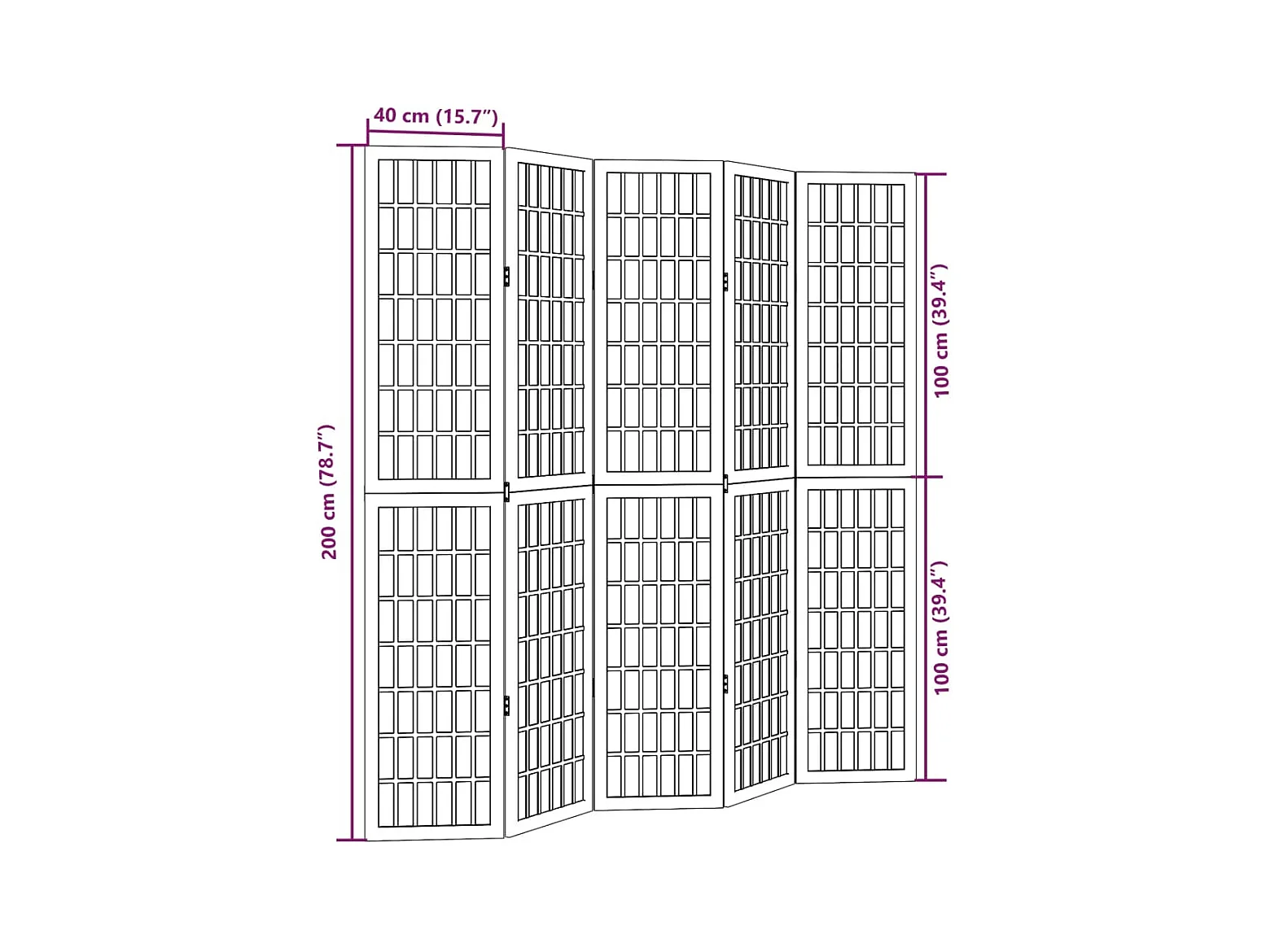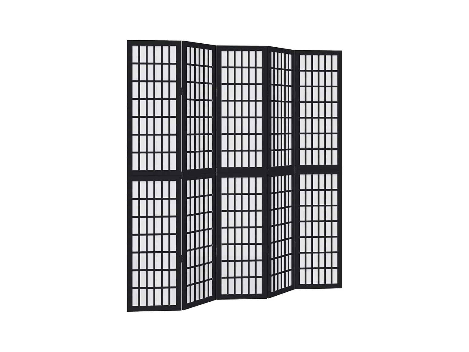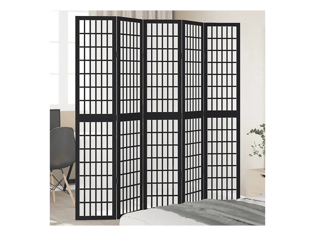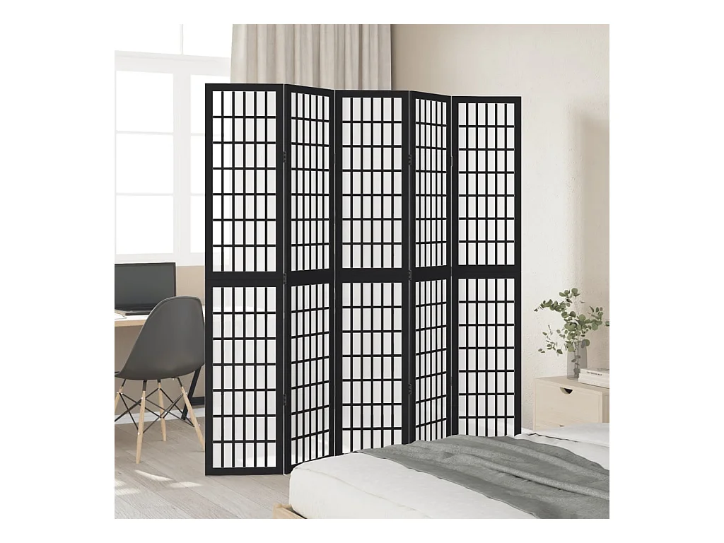 Cloison de séparation 5 panneaux noir bois de paulownia massif