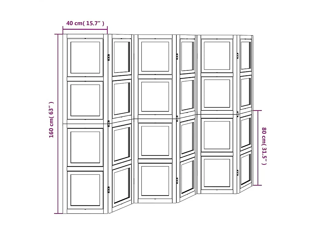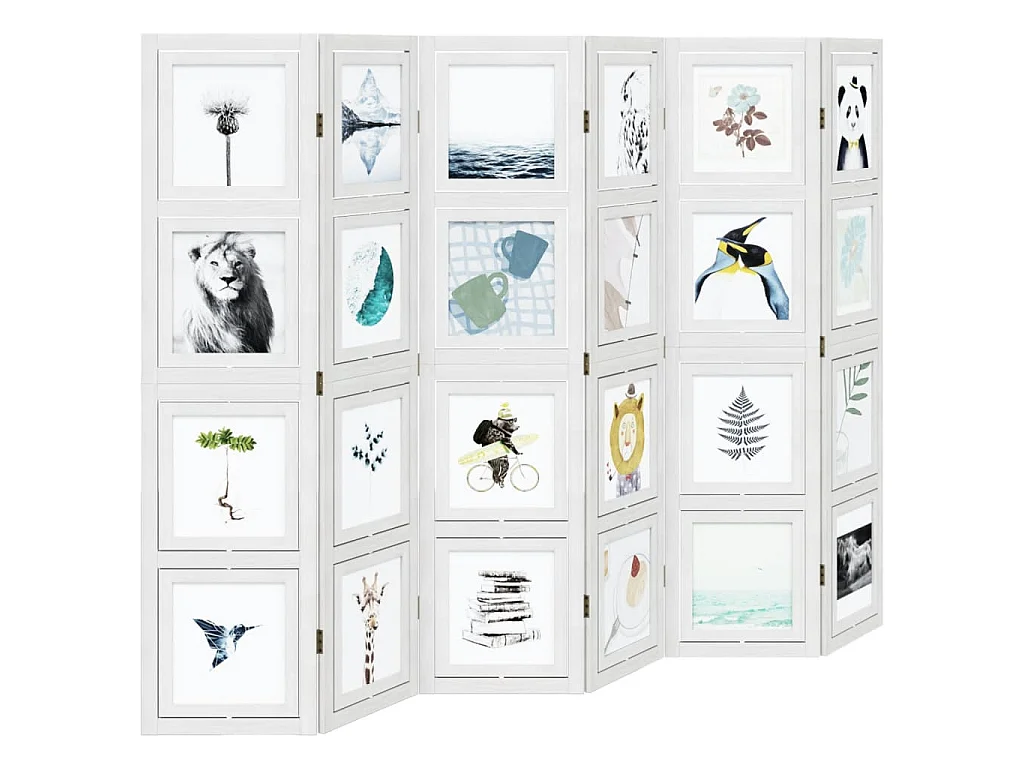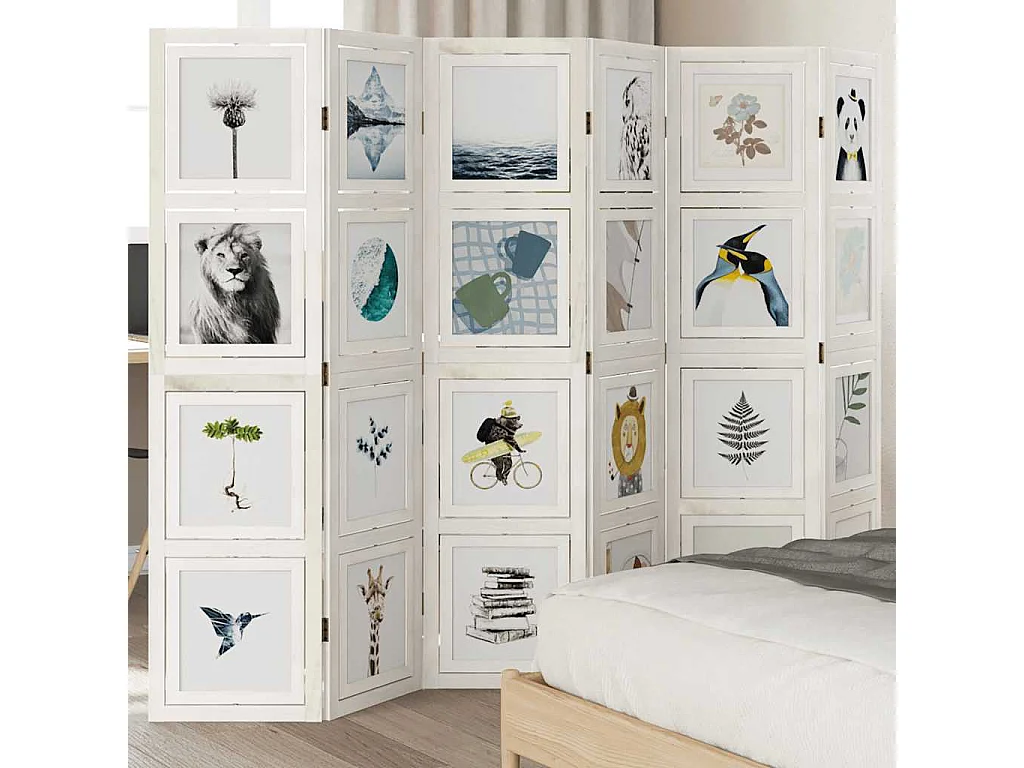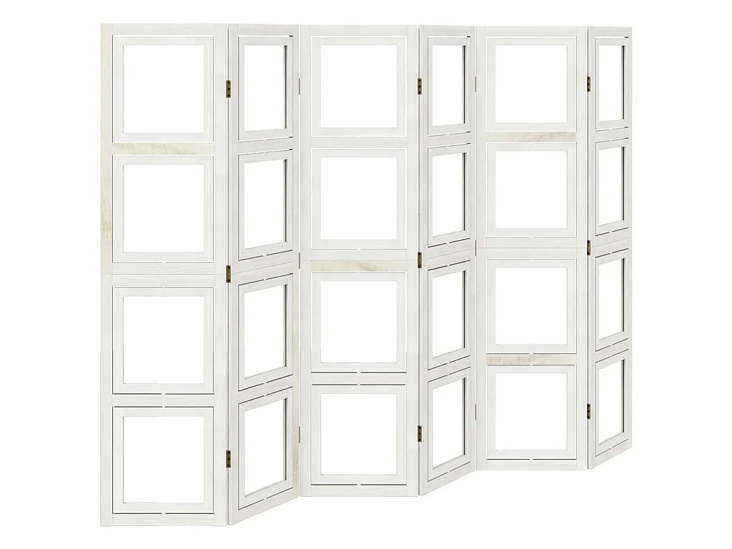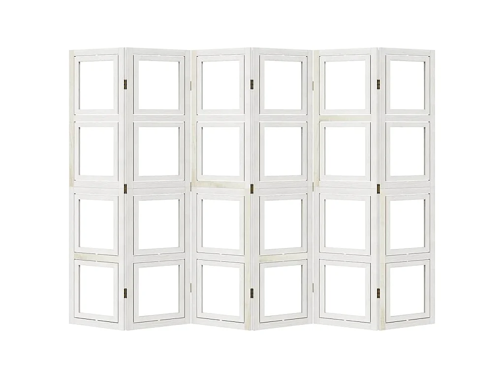Cloison de séparation 6 panneaux blanc bois de paulownia massif