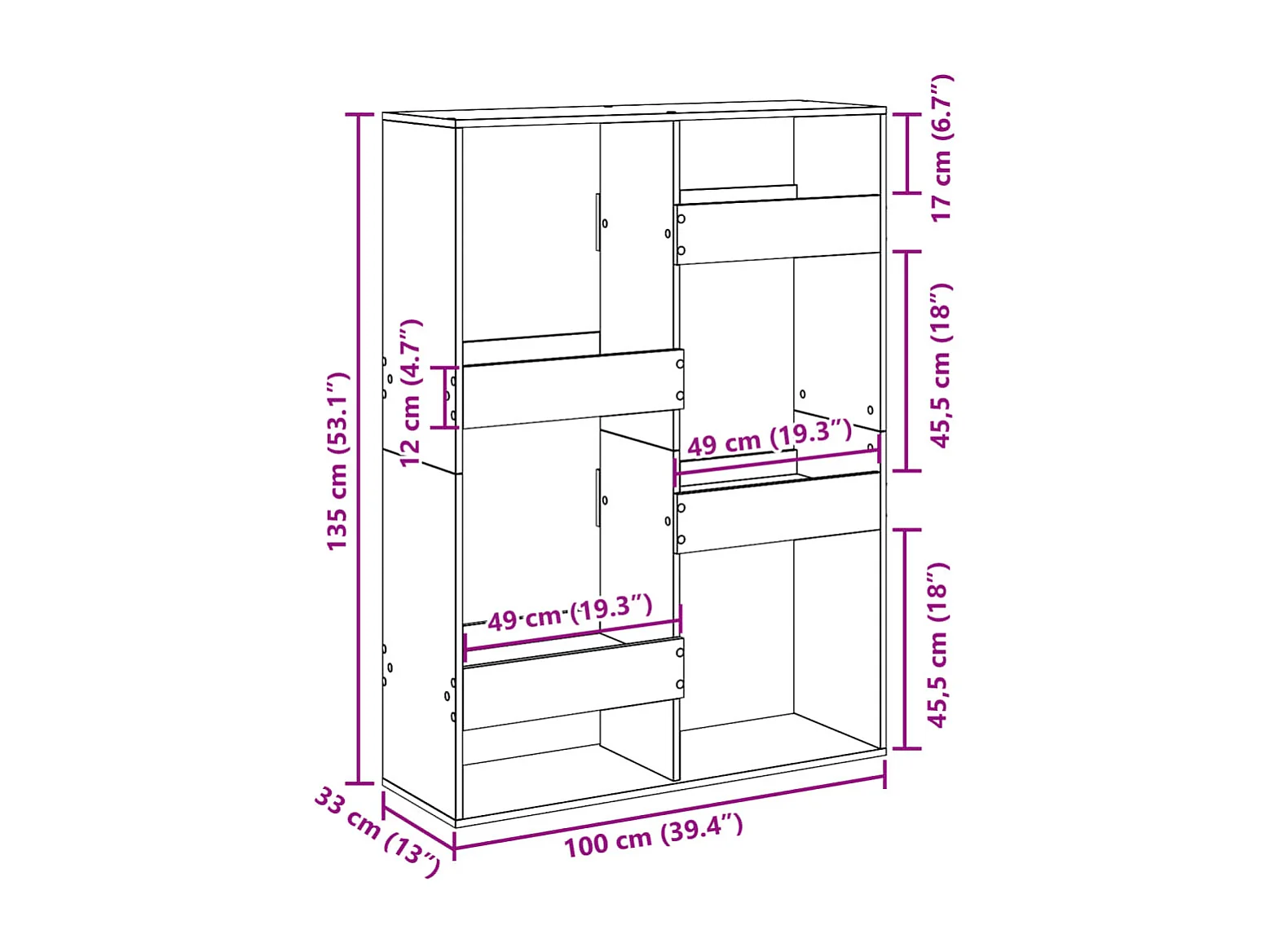 Bibliothèque sonoma gris 100x33x135 cm bois d'ingénierie