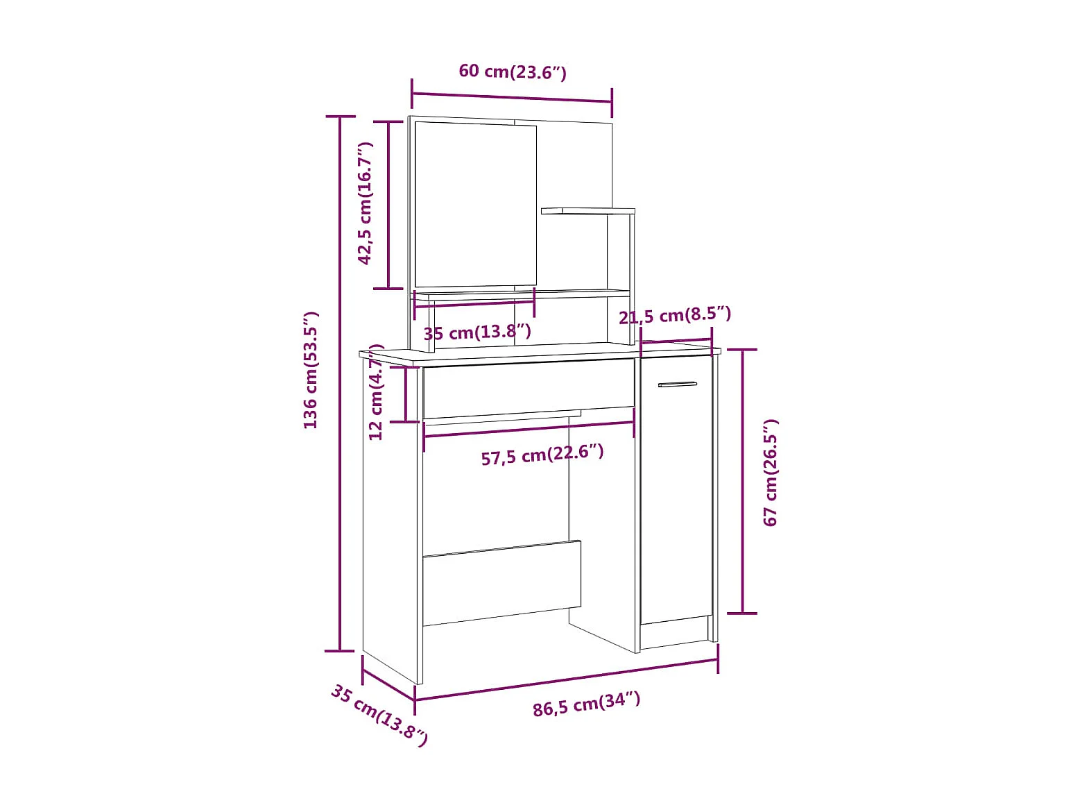 Coiffeuse avec miroir chêne sonoma 86,5x35x136 cm