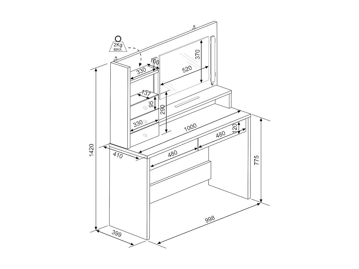 A la recherche de la coiffeuse de vos rêves? N'hésitez plus et optez pour GIULIANA ! Grâce à son miroir lumineux et ses nombreux rangements, vous pourrez créer un réel espace maquillage sobre et ordonné.