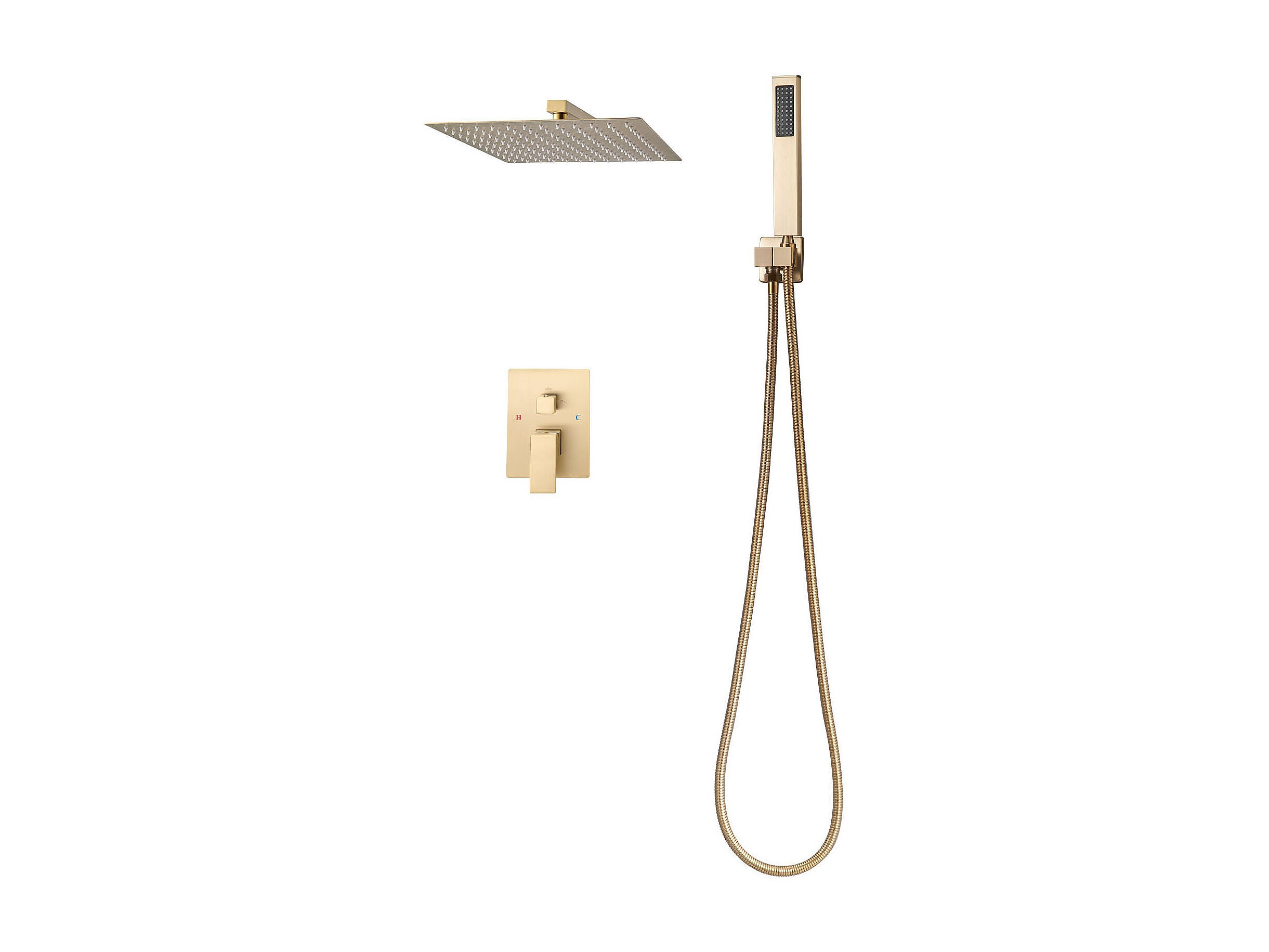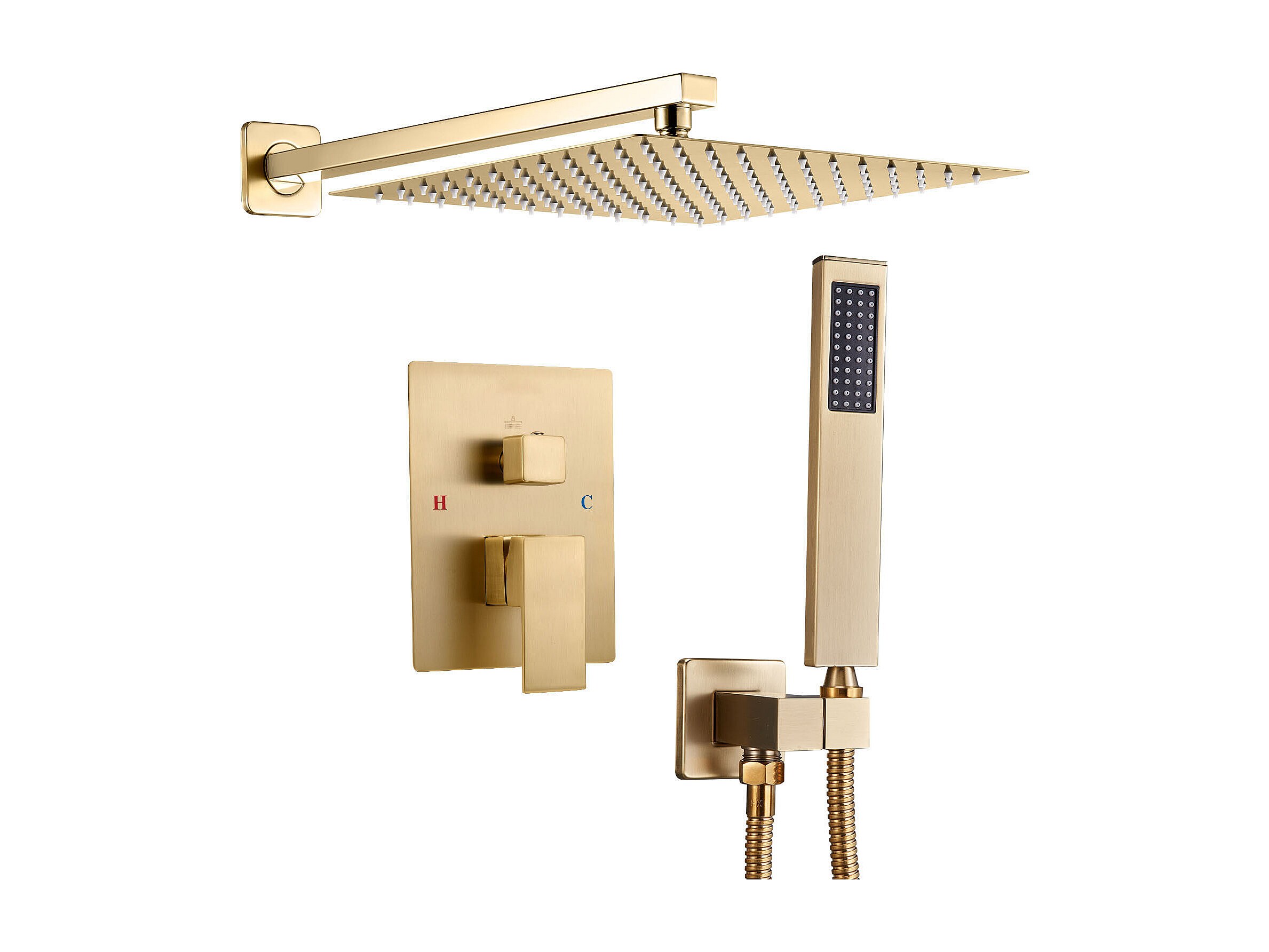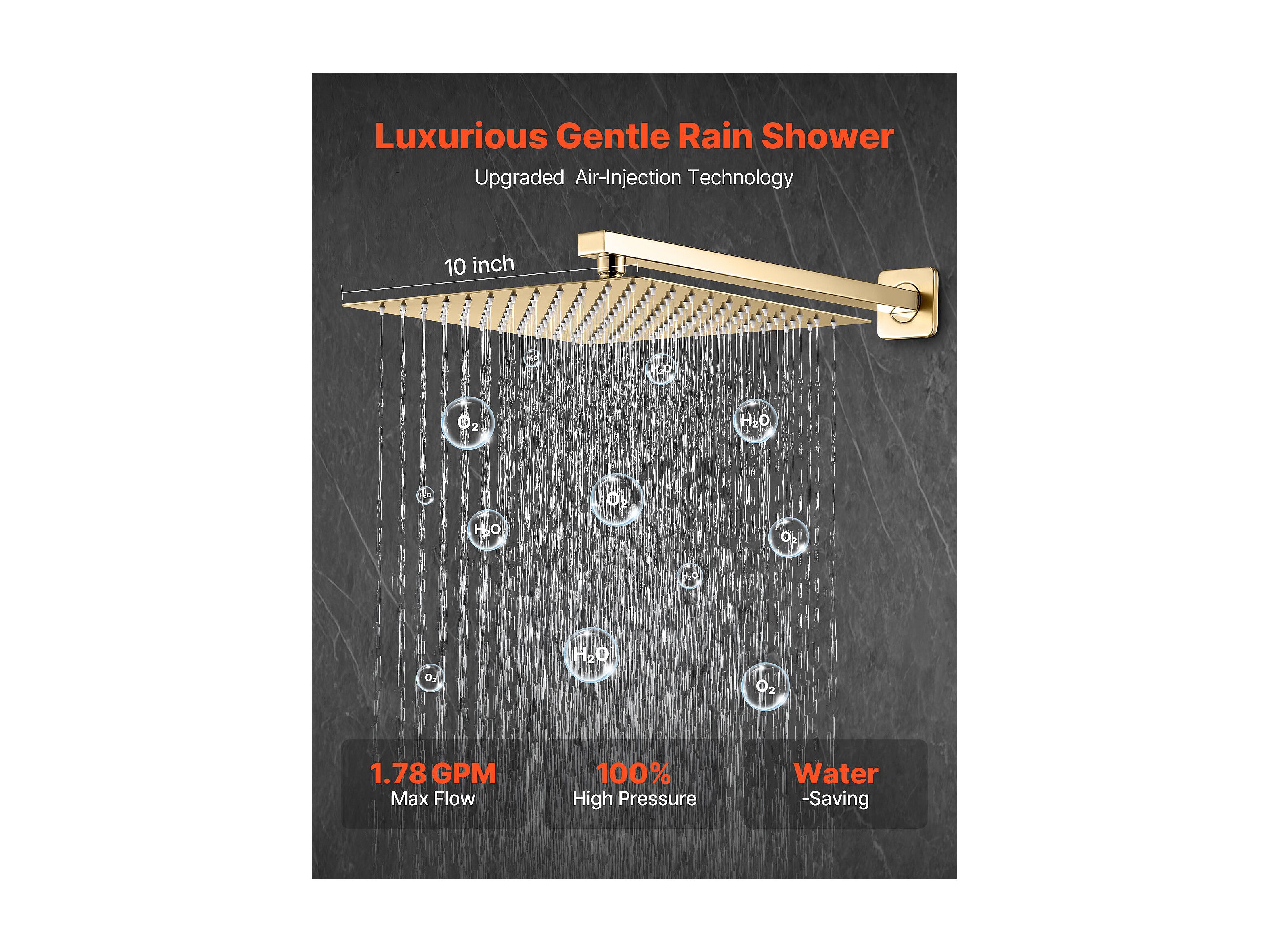 Colonne de Douche SucceBuy Ensemble de Douche avec Pommeau de Douche Carré Effet Pluie de 254 mm et Douchette à Main, Ensemble de Douche Mural, Or Brossé