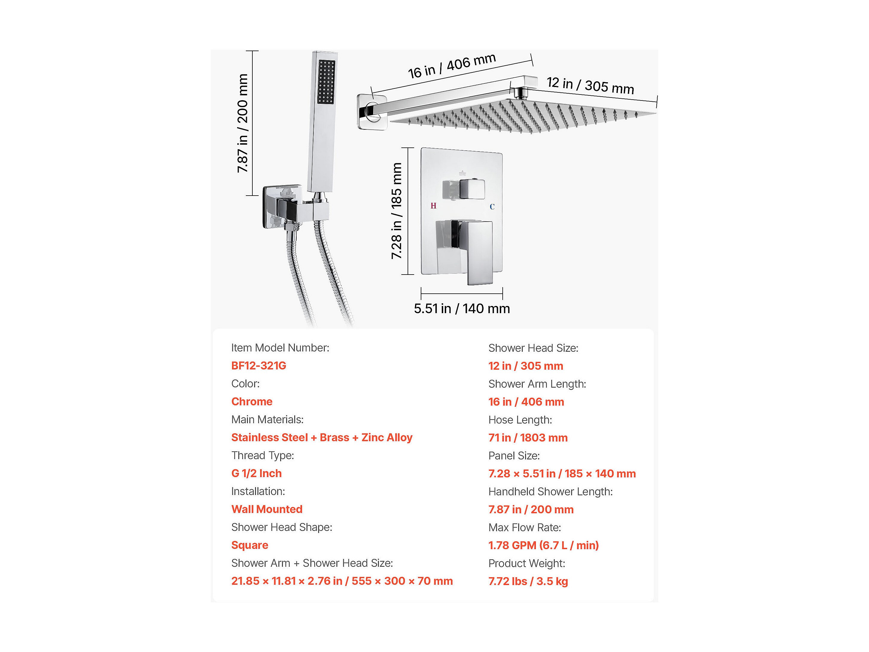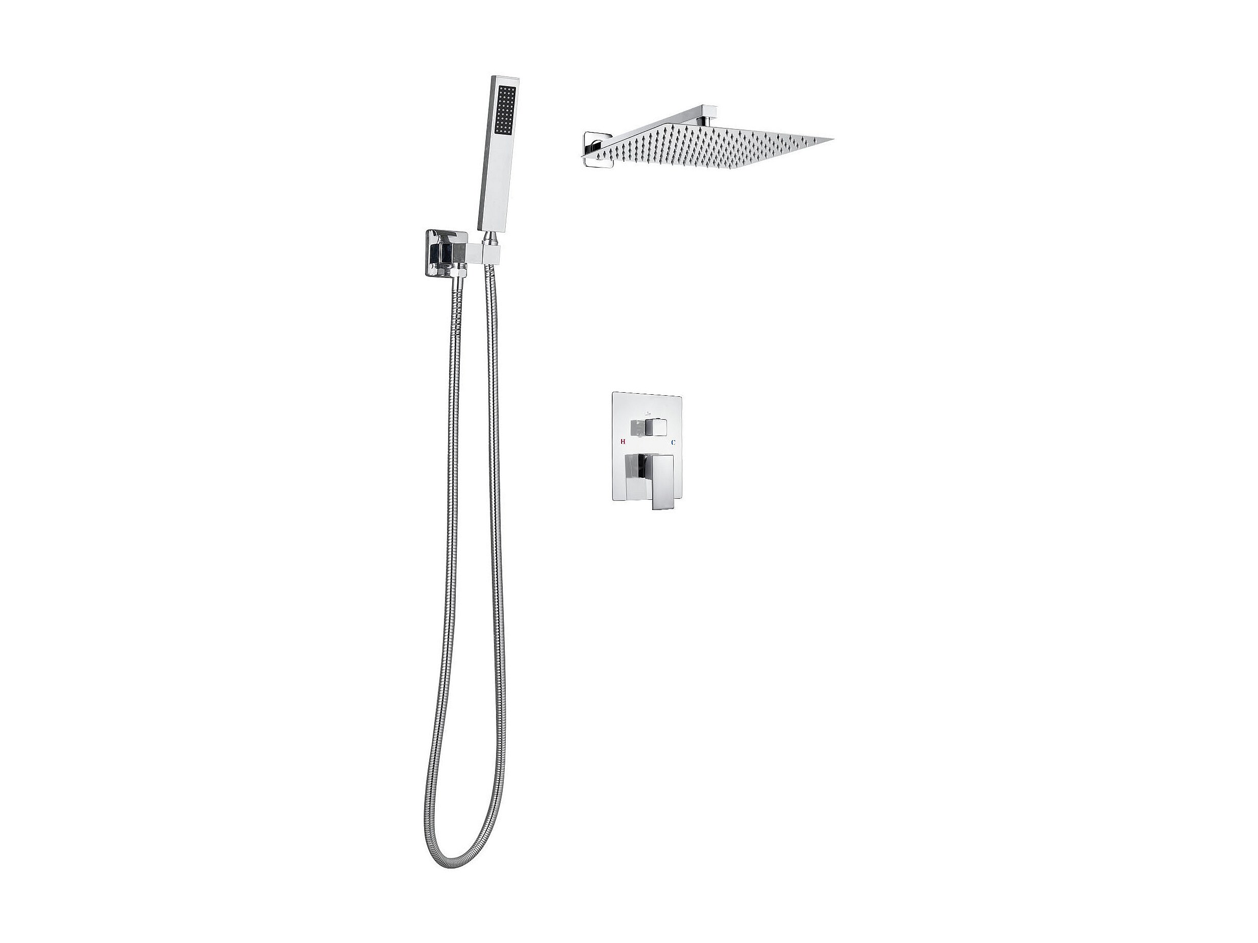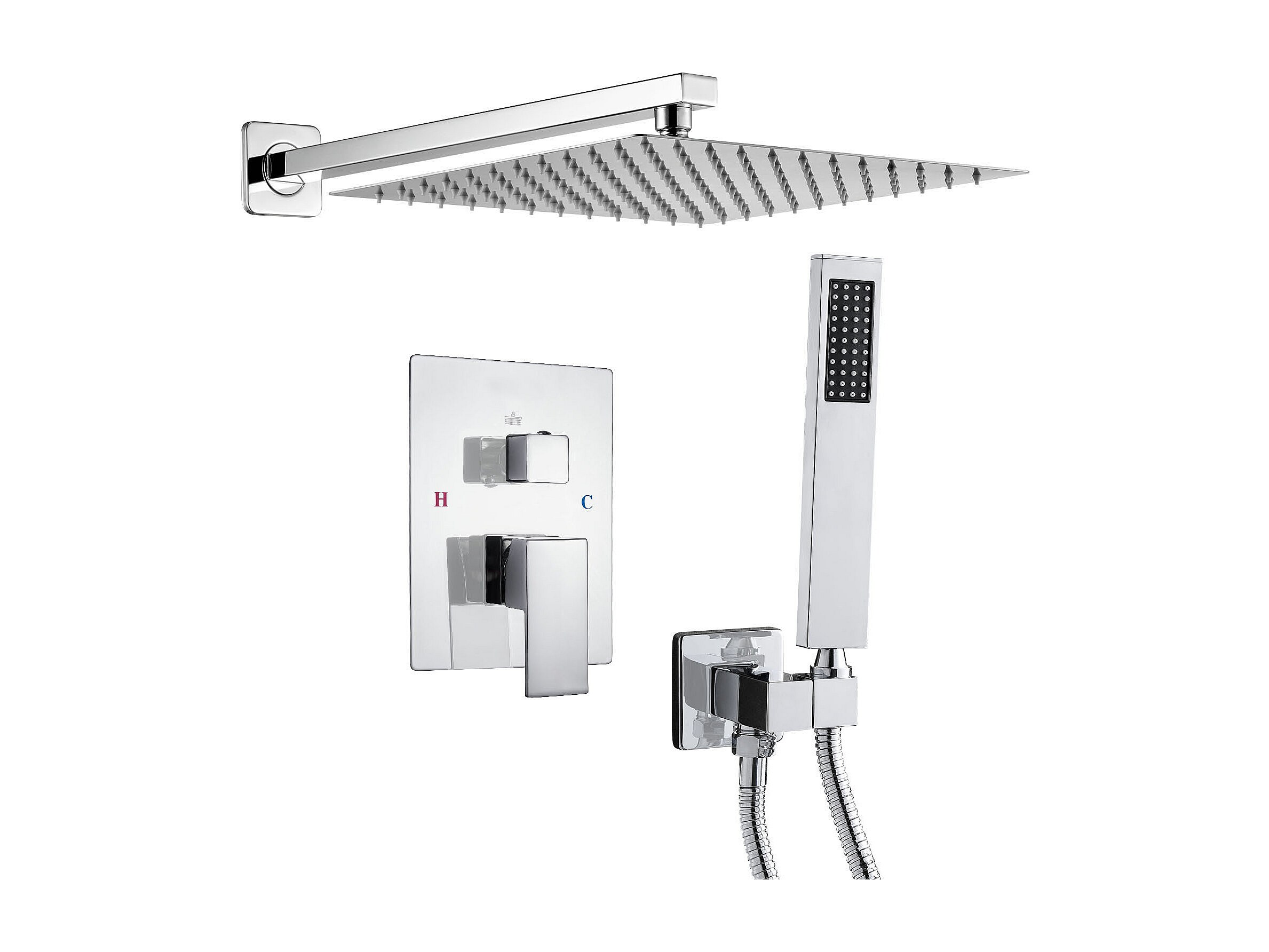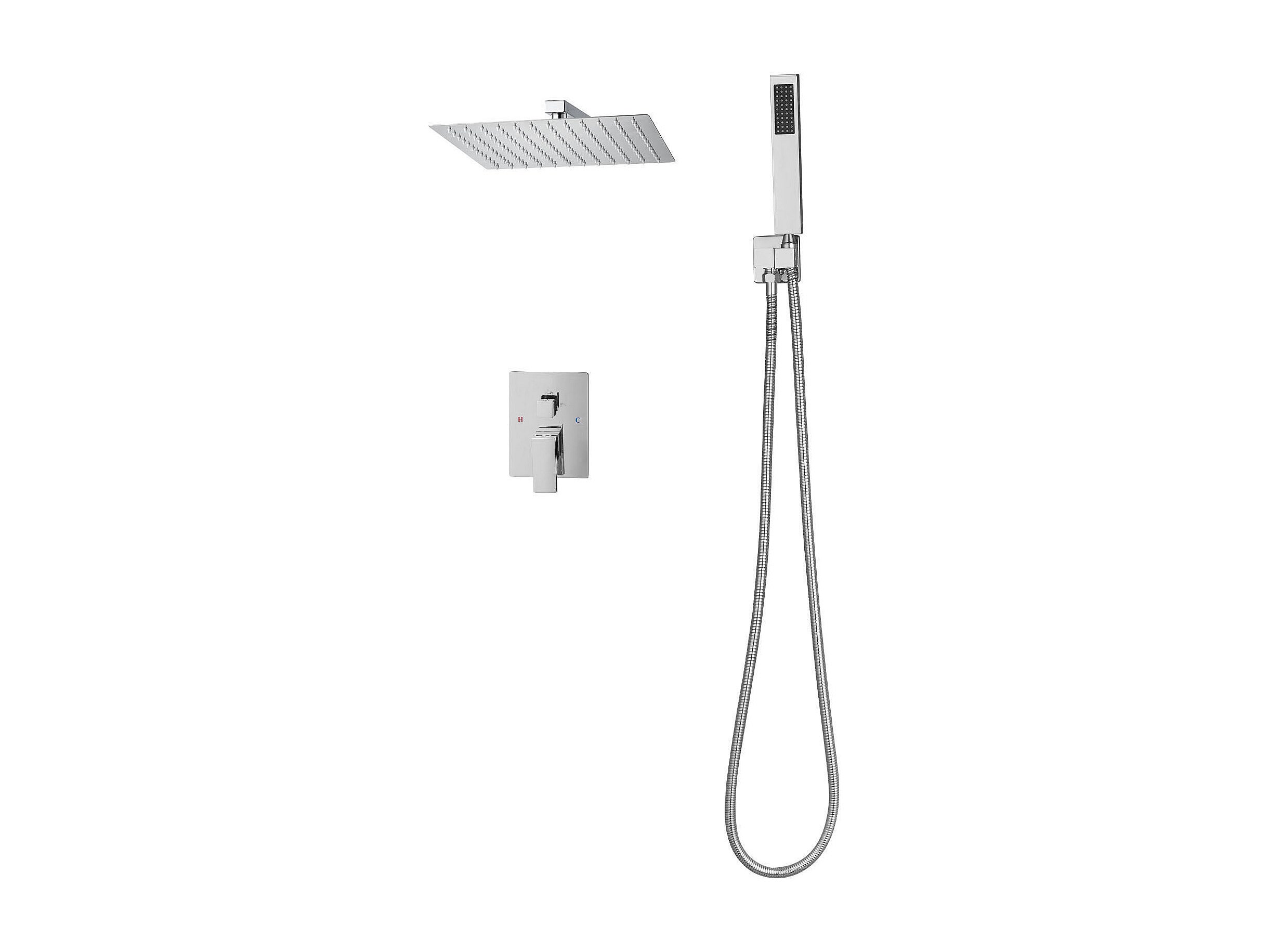 Colonne de Douche SucceBuy Kit de Douche, Système de Douche avec Pommeau Carré 305 mm, Douchette à Main et Kit de Montage Mural, Finition Argentée