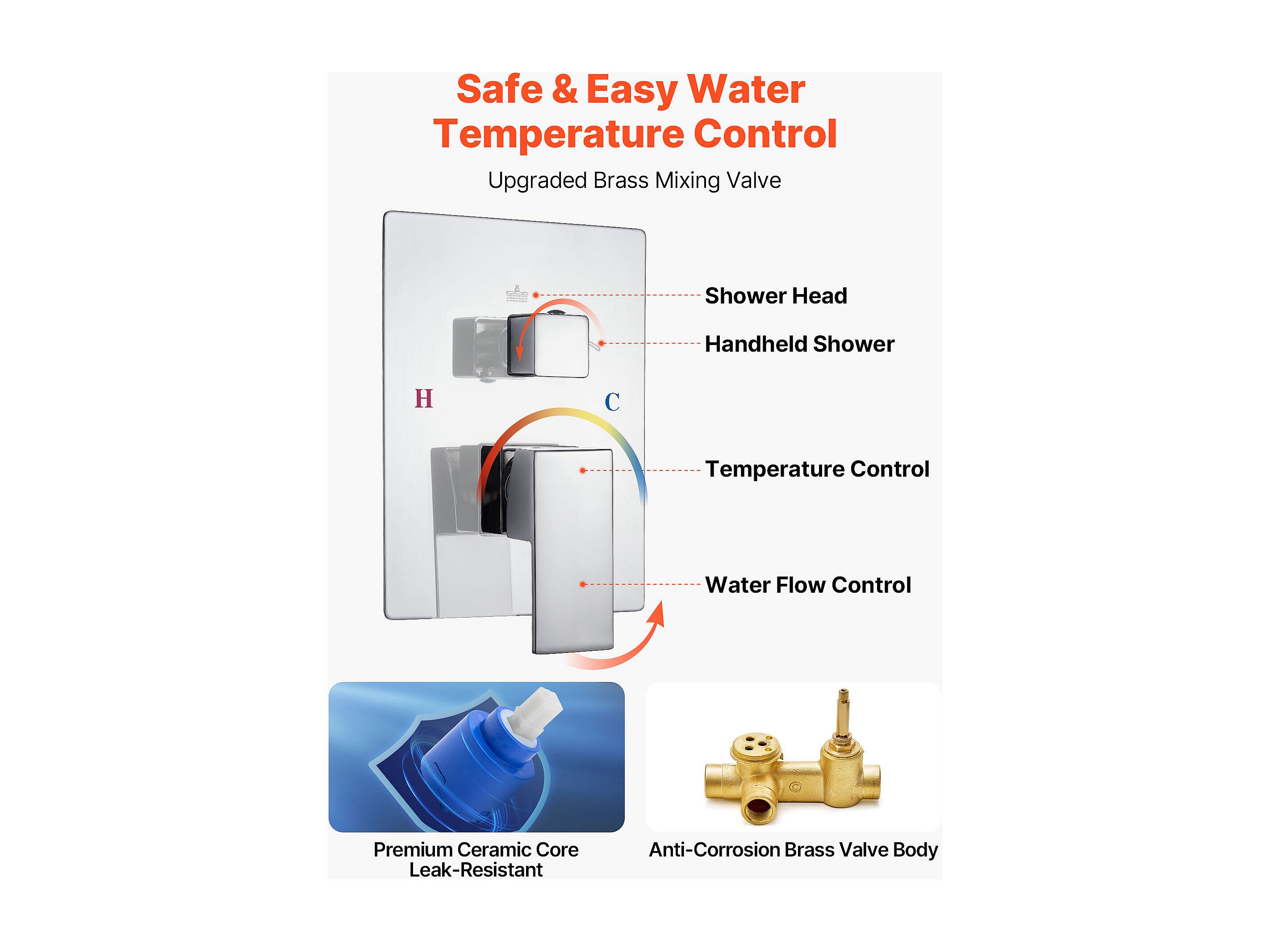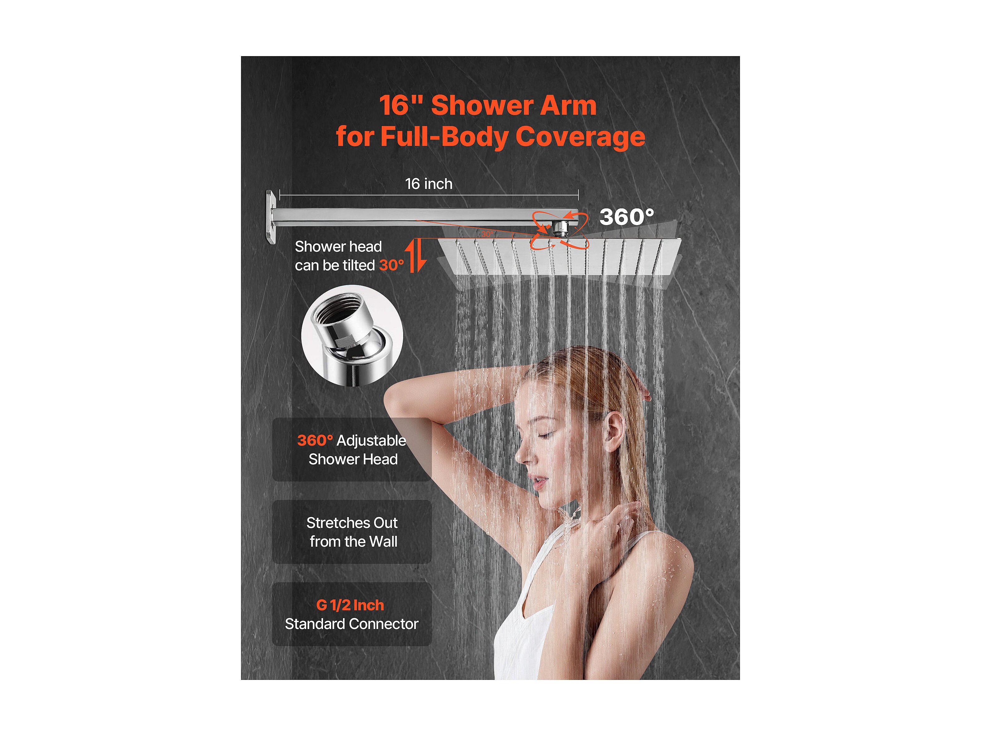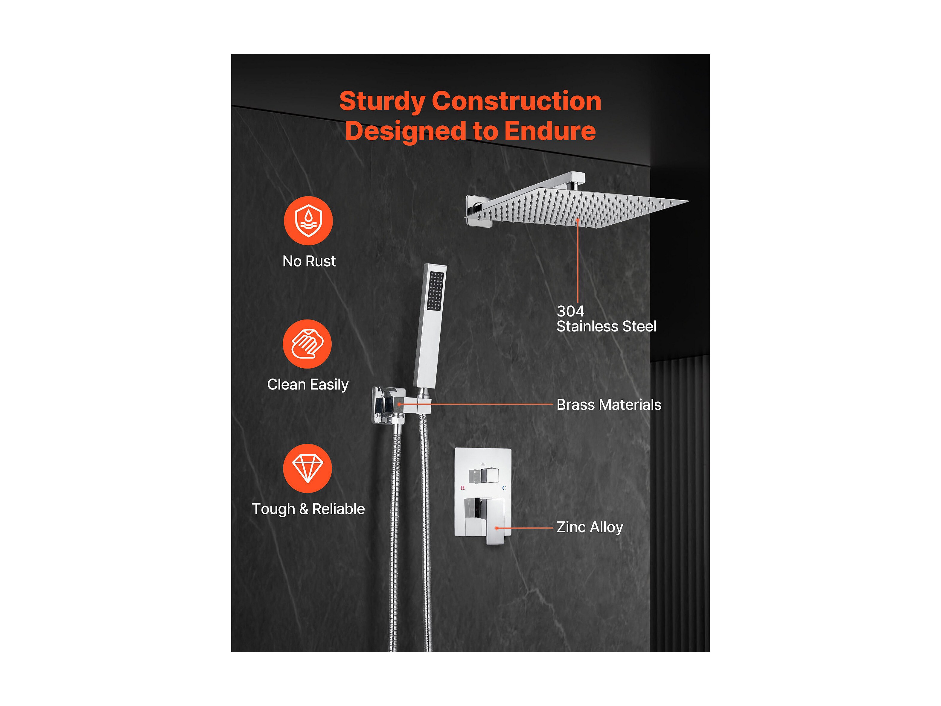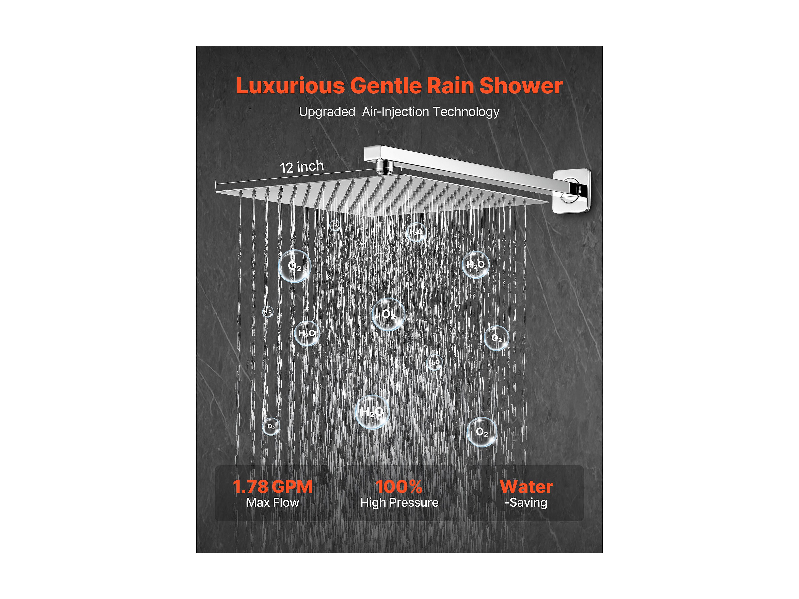 Colonne de Douche SucceBuy Kit de Douche, Système de Douche avec Pommeau Carré 305 mm, Douchette à Main et Kit de Montage Mural, Finition Argentée