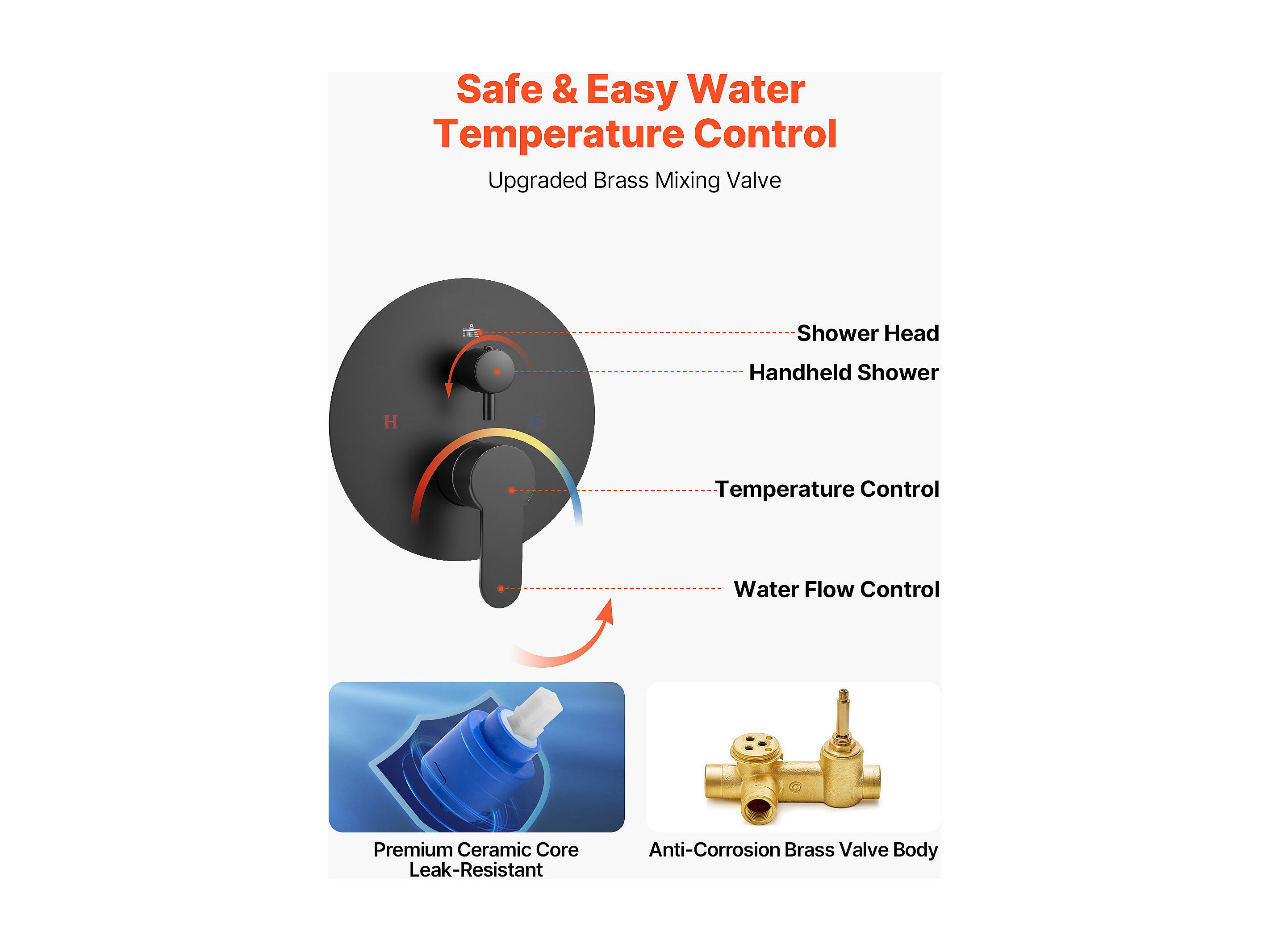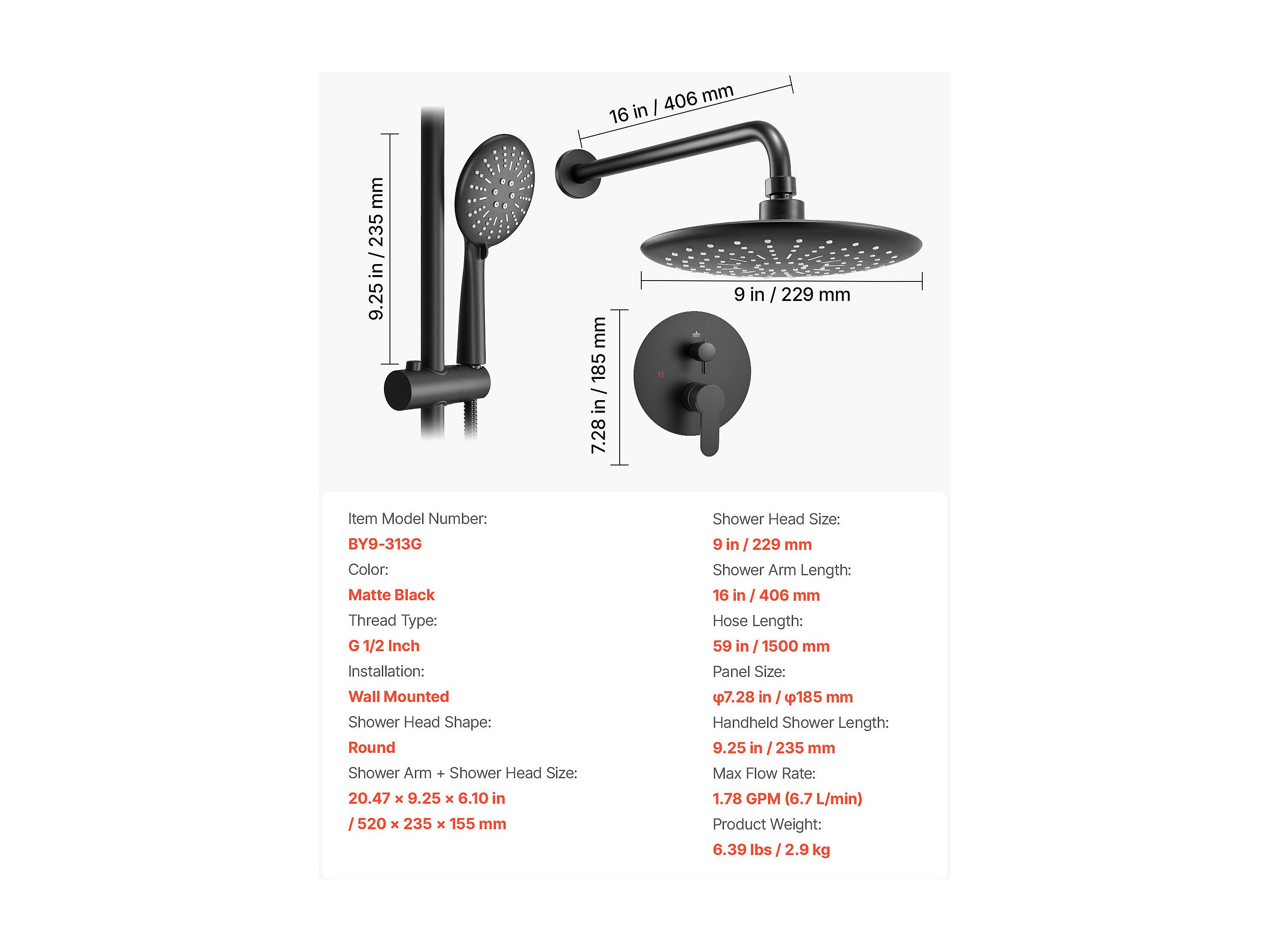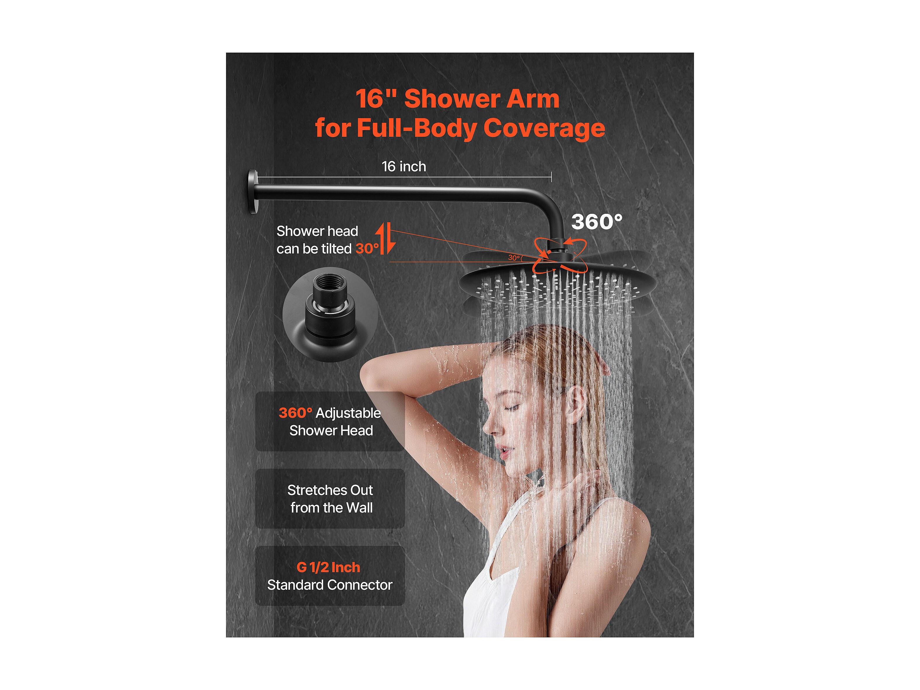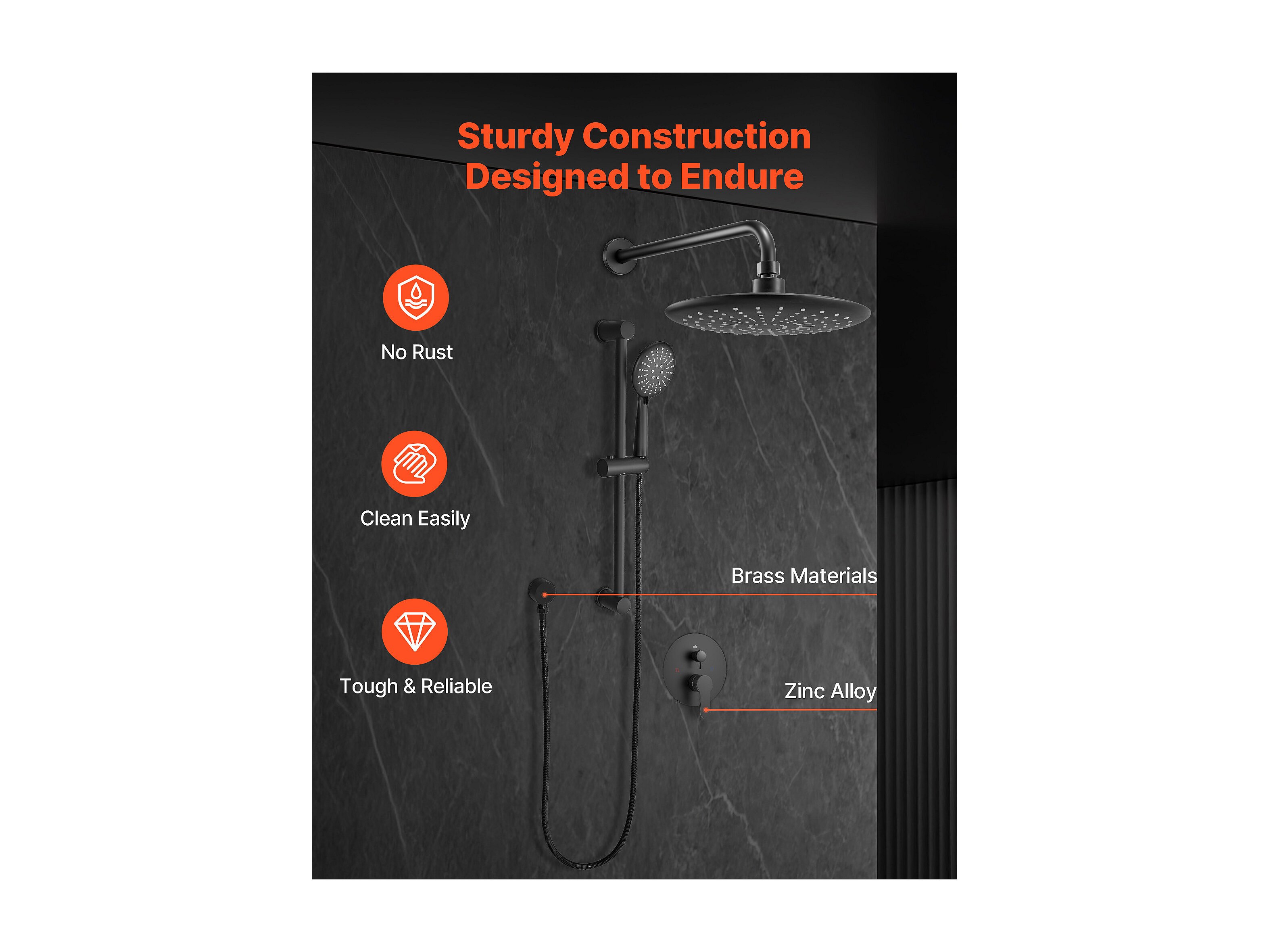 Colonne de Douche SucceBuy Kit de Douche, Système de Douche avec Pommeau de Tête Rond de 229 mm, Douchette à Main et Kit de Garniture, Finition Noir Mat