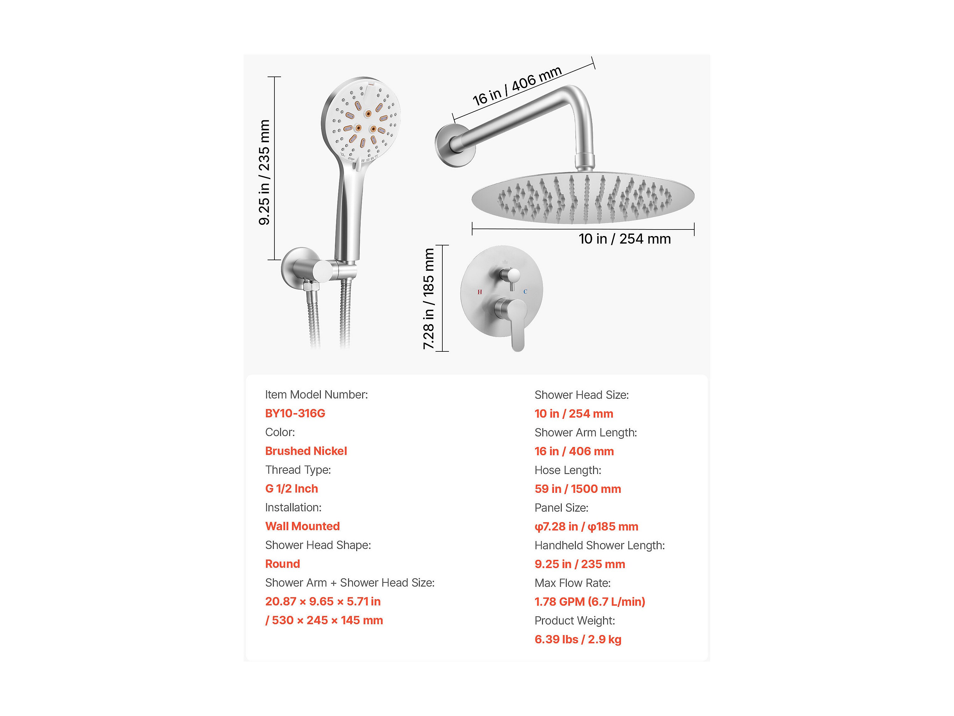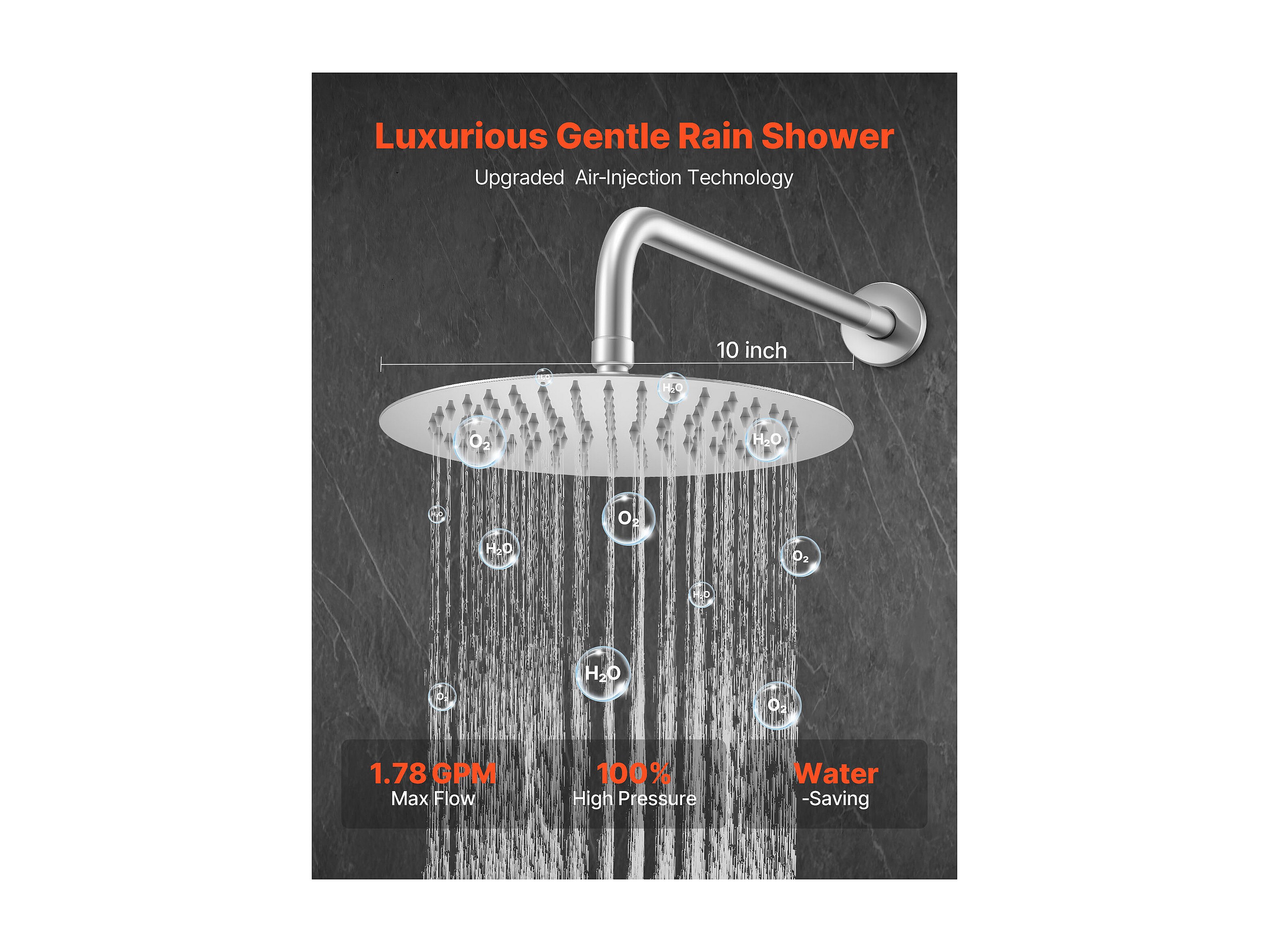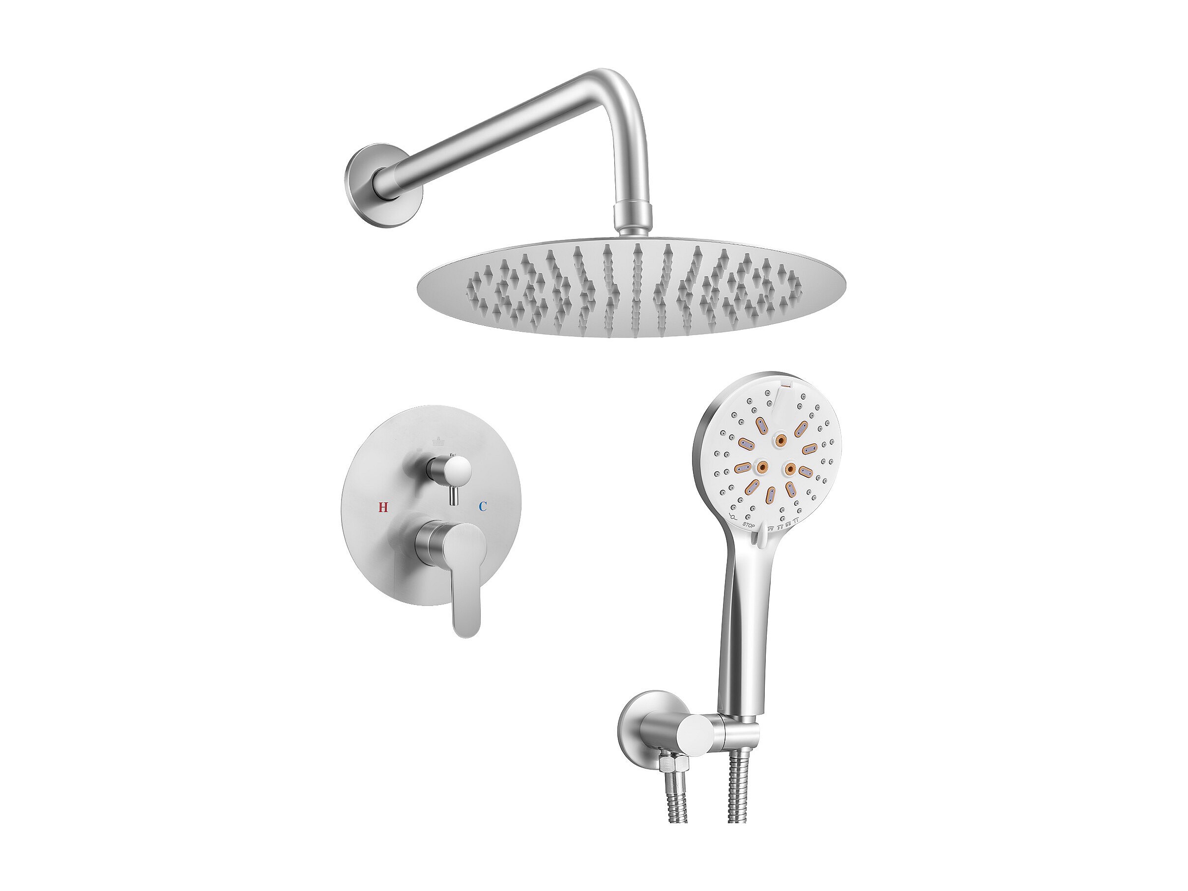 Colonne de Douche SucceBuy Kit de Douche, Système de Douche Pluie avec Pommeau Rond 254 mm, Douchette à Main et Kit de Garniture, Finition Nickel Brossé