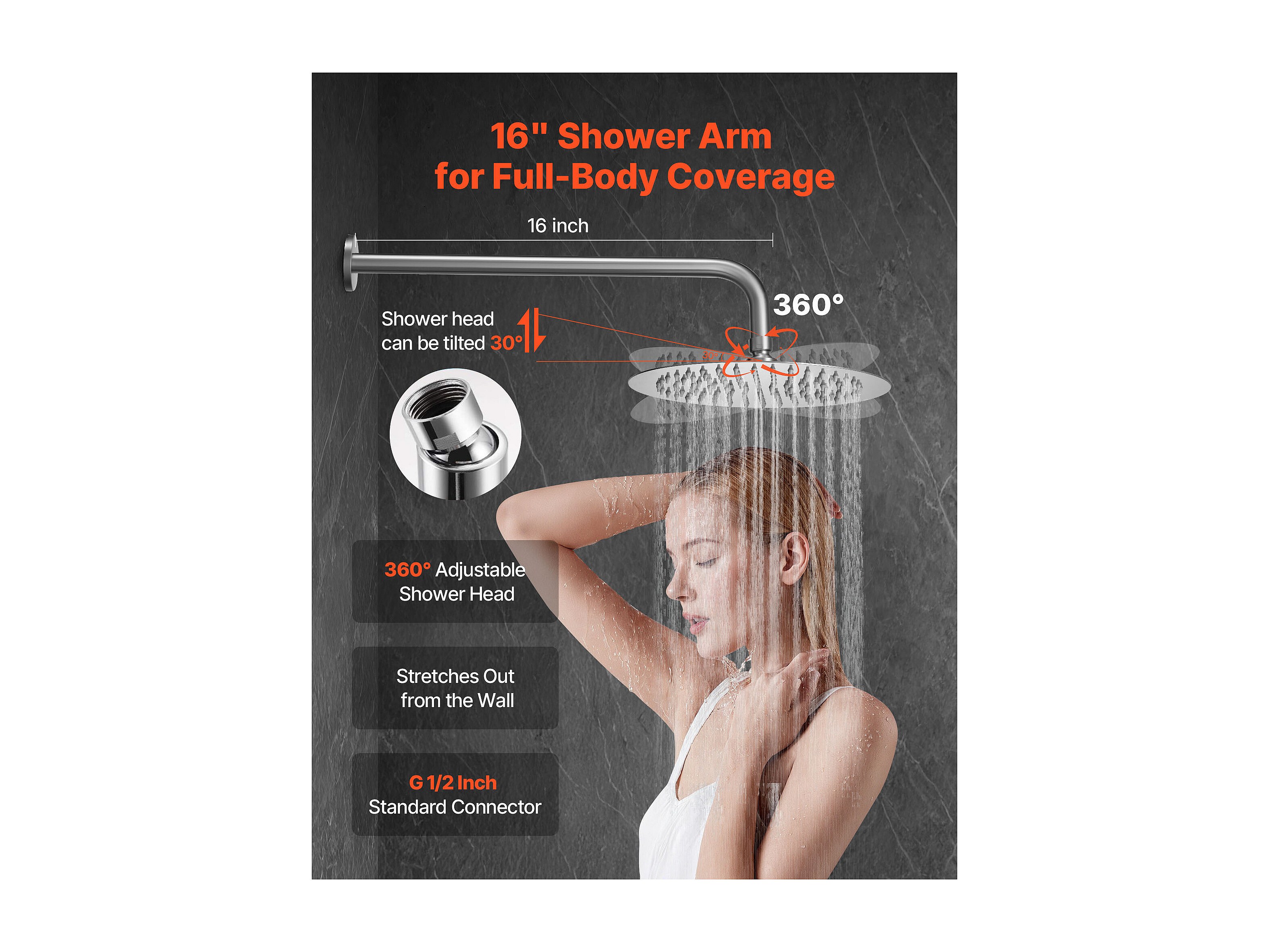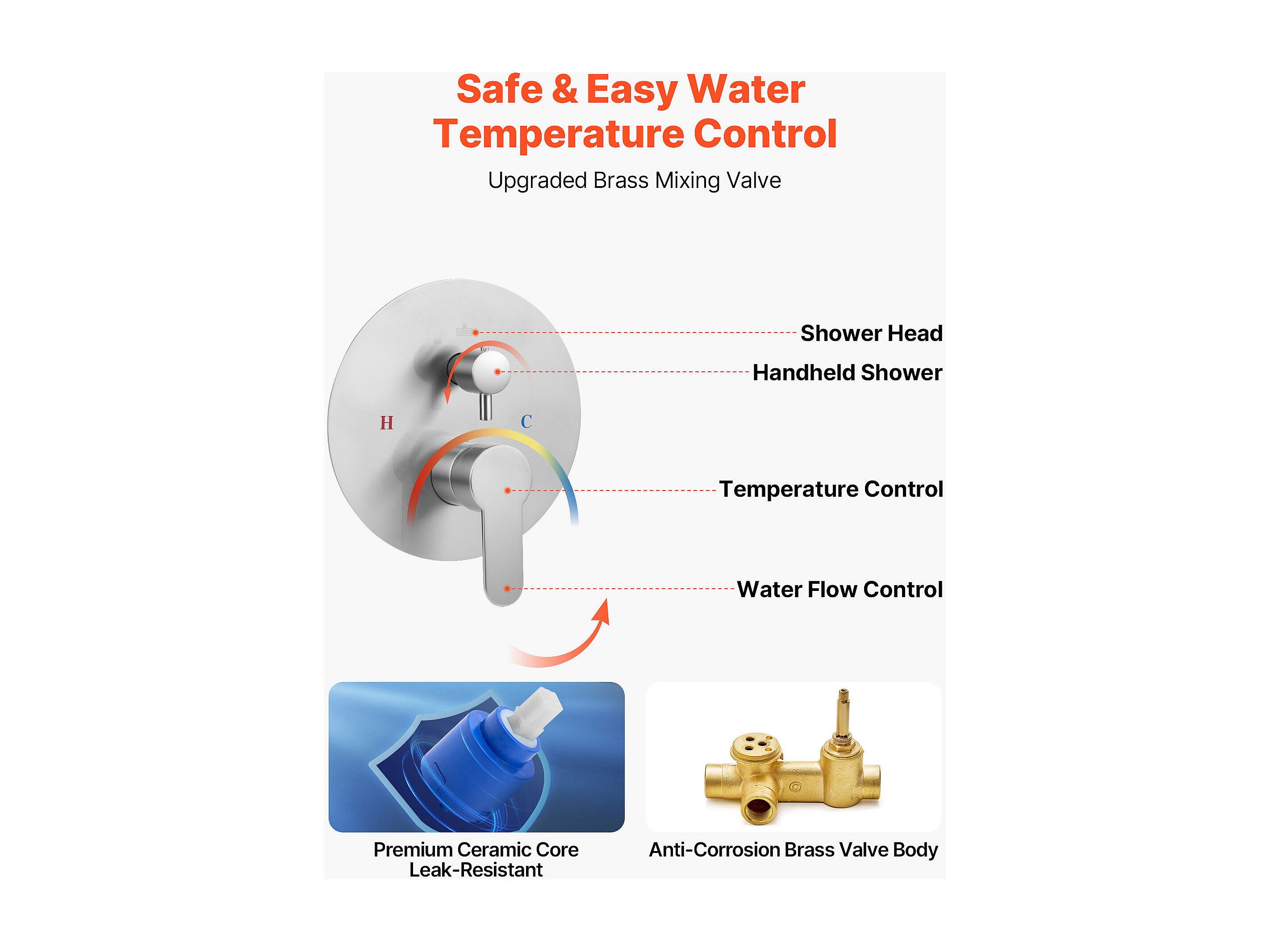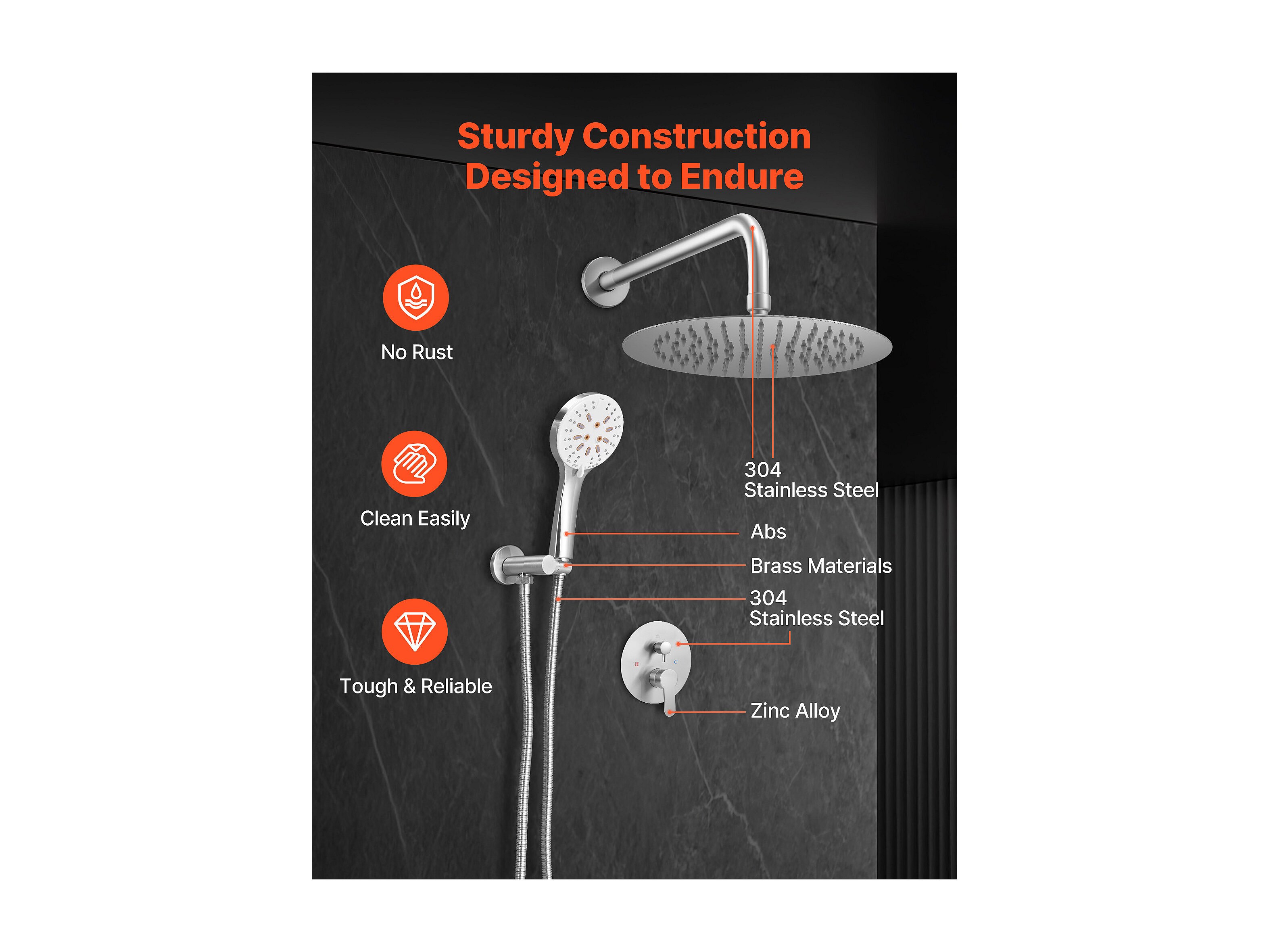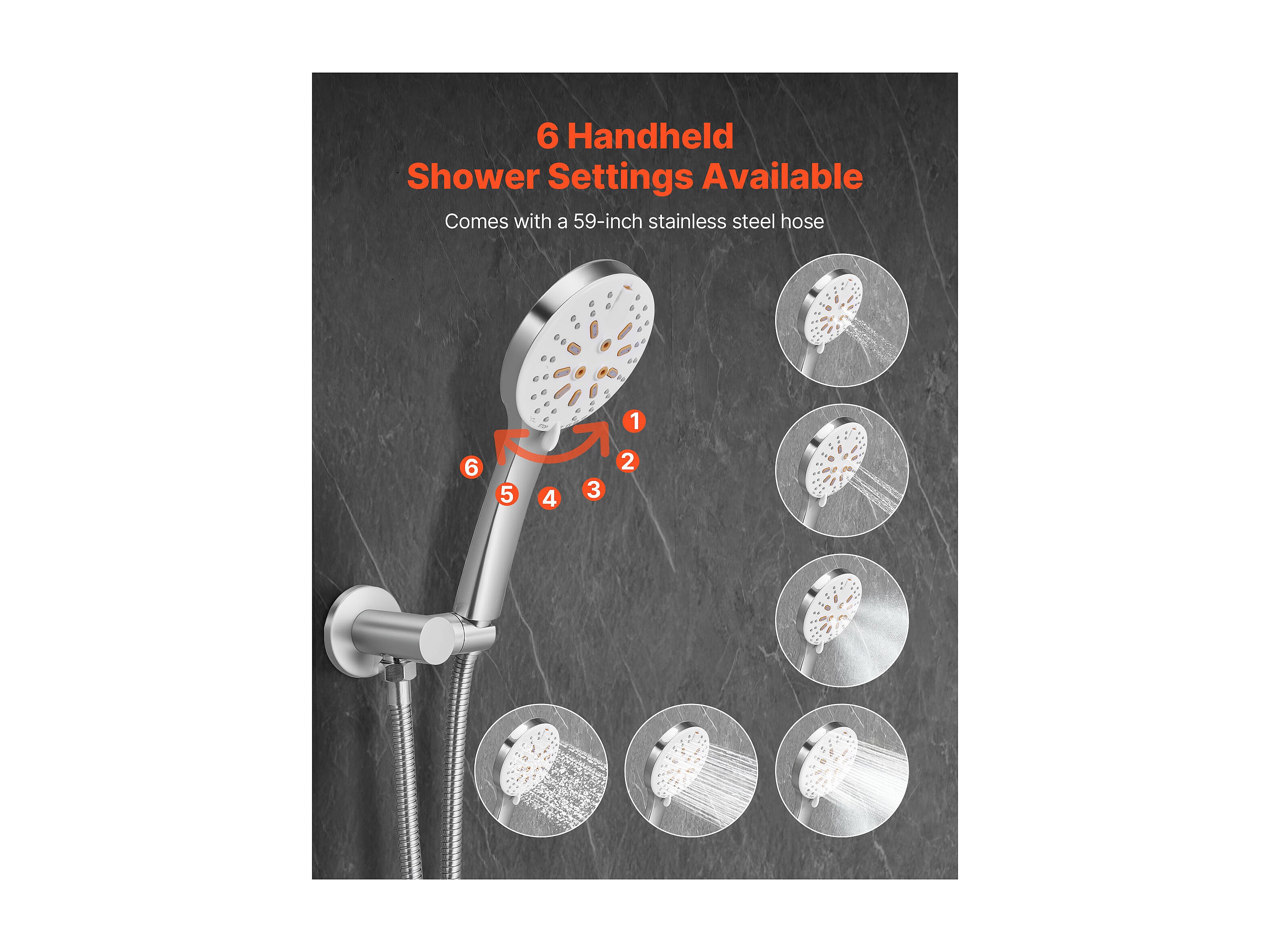 Colonne de Douche SucceBuy Kit de Douche, Système de Douche Pluie avec Pommeau Rond 254 mm, Douchette à Main et Kit de Garniture, Finition Nickel Brossé