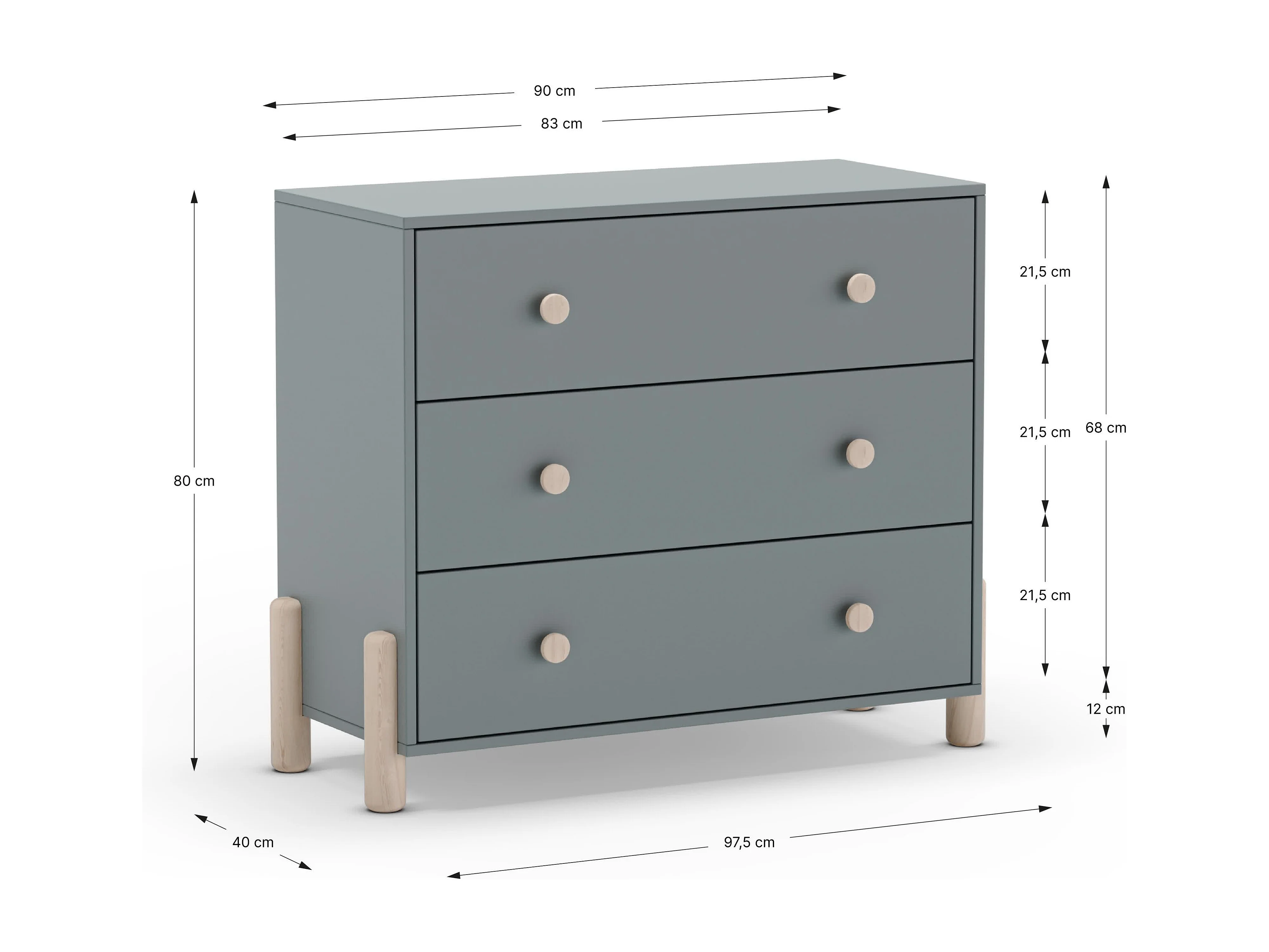Commode 3 tiroirs L90 cm - DAPHNÉ