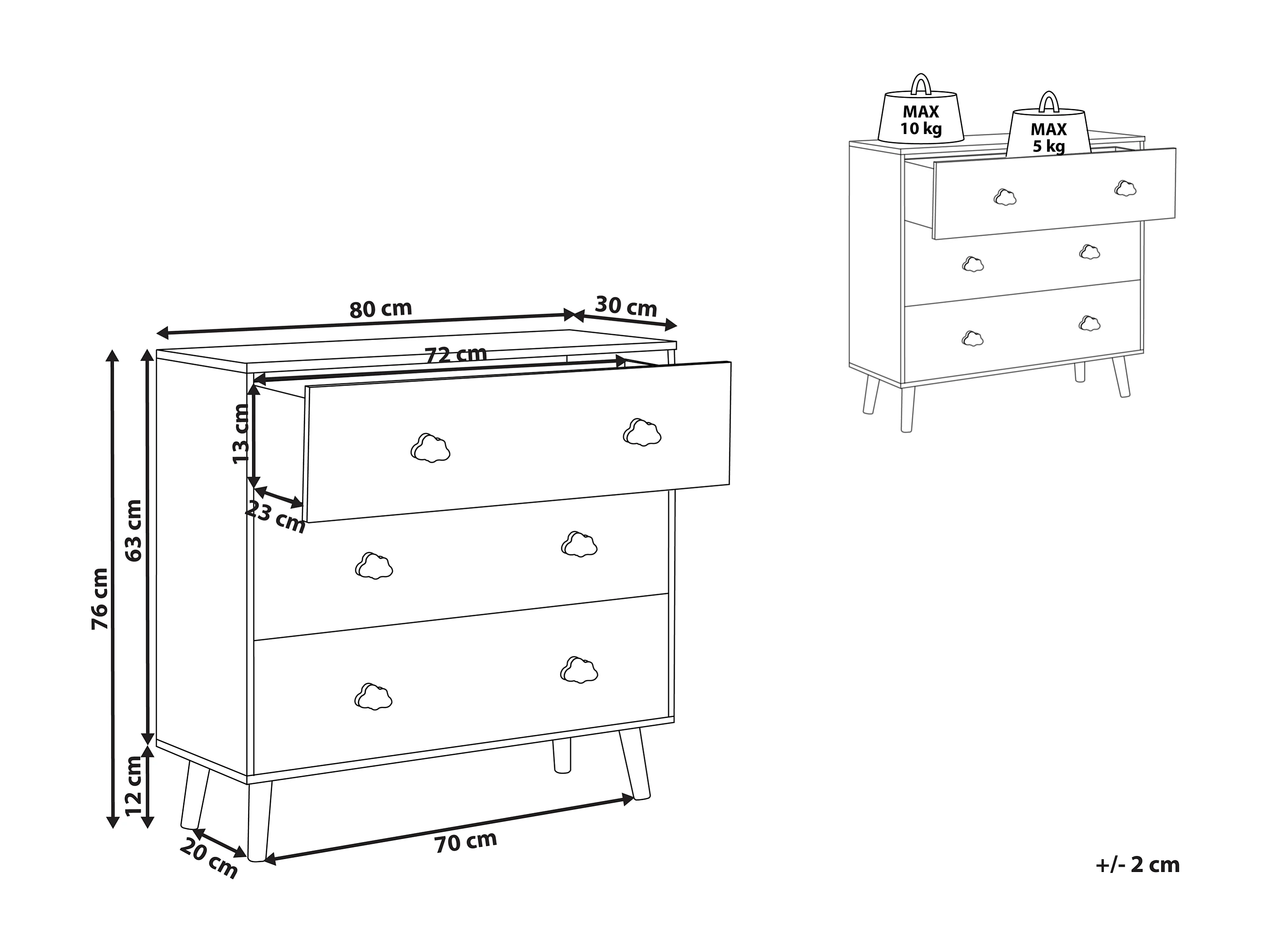 Commode à 3 tiroirs CLOUDY Blanc