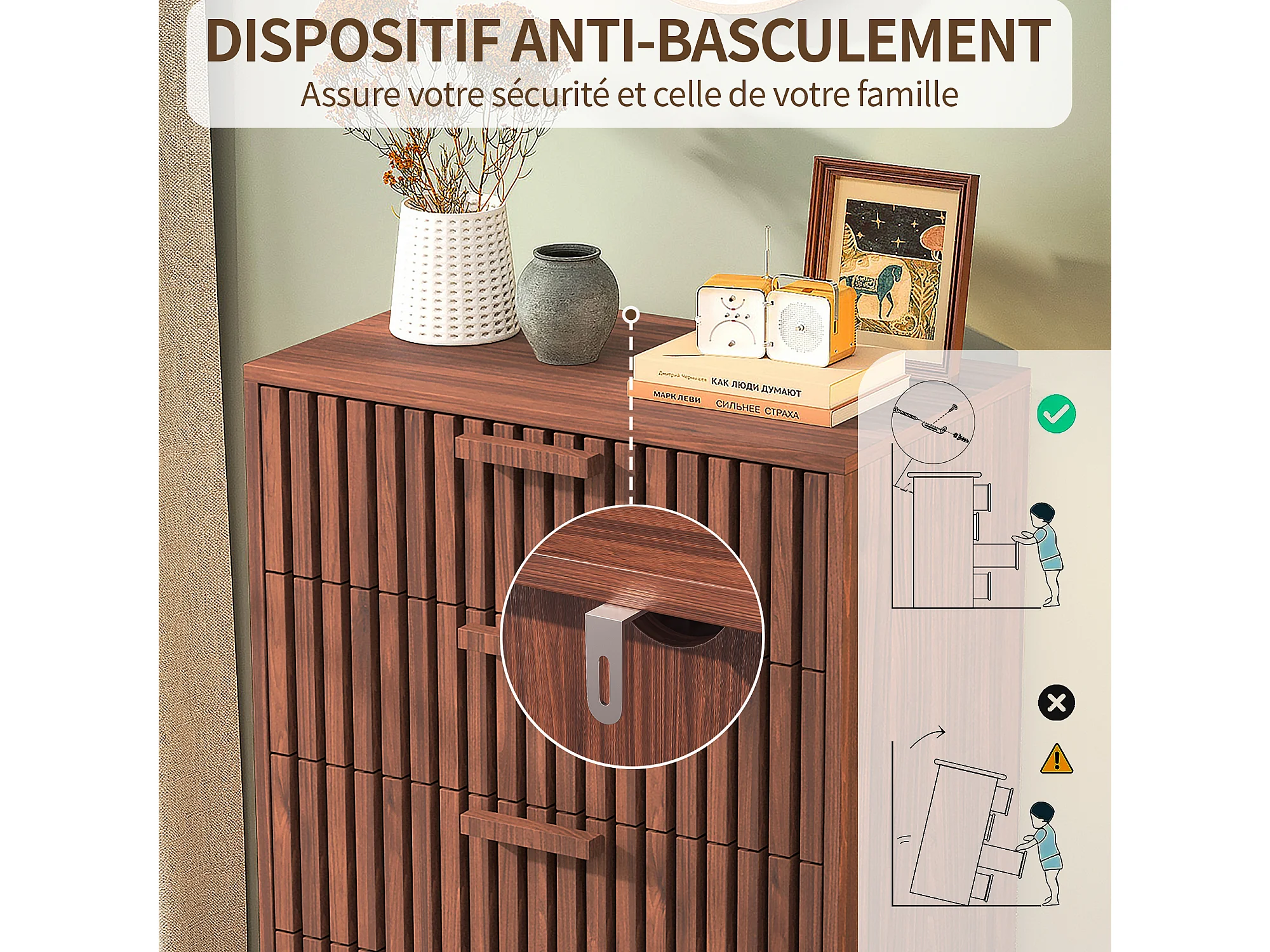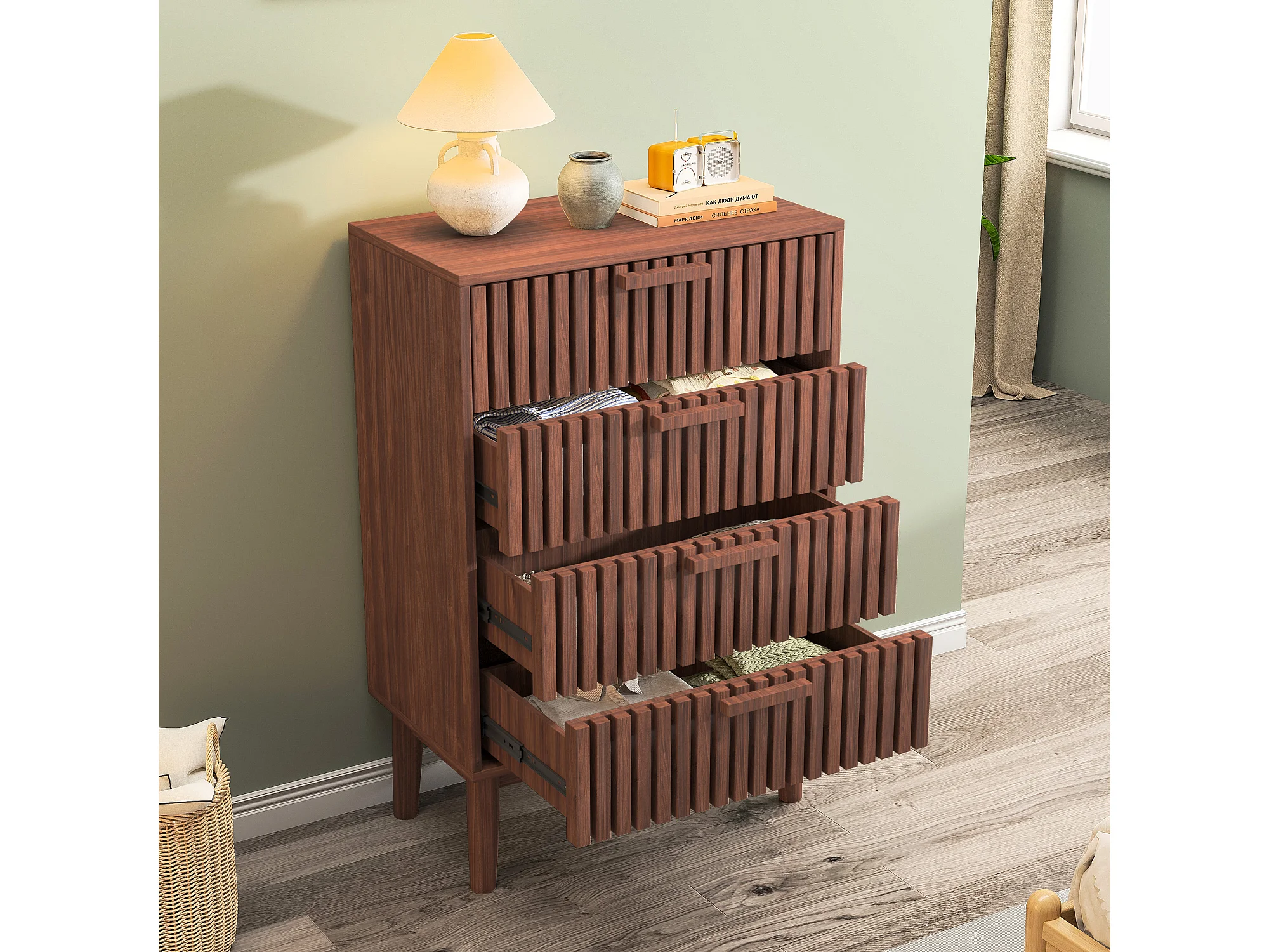 Commode à 4 tiroirs, avec poignée en bois et pieds de support,Couleur noyer, 60 x 34 x 91 cm