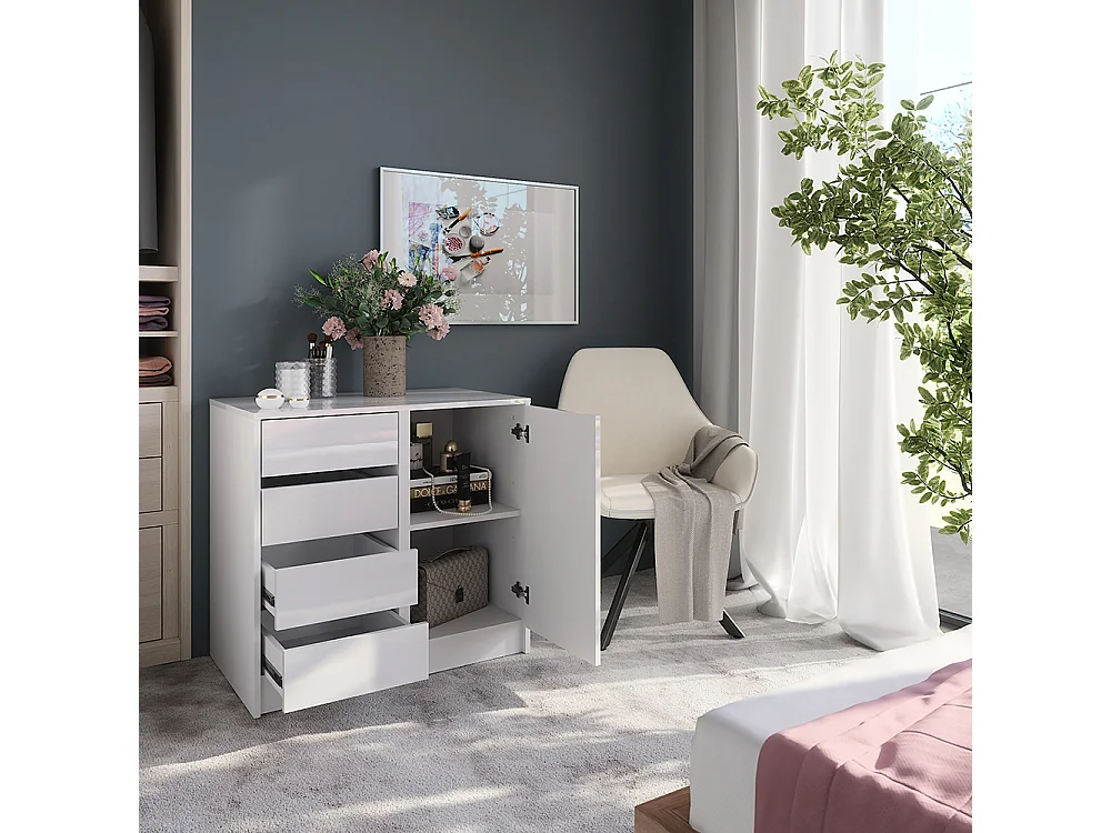 Commode avec tiroirs blanc/blanc brillant 80.2x50.1x76 sherry