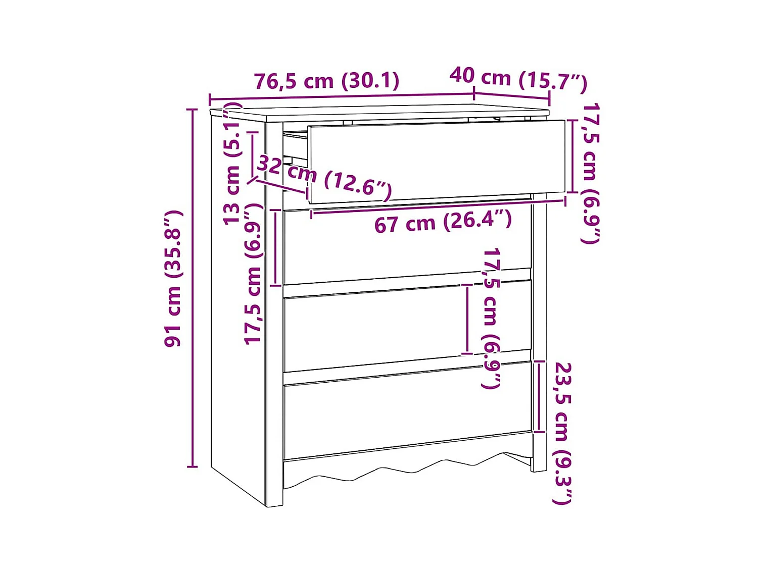 Commode Drammen Blanc 76,5 x 40 x 91 cm Bois de pin massif