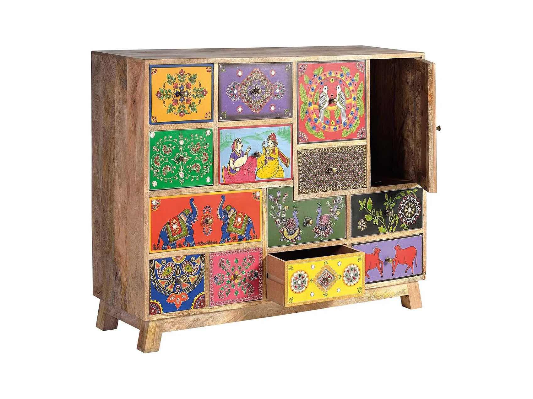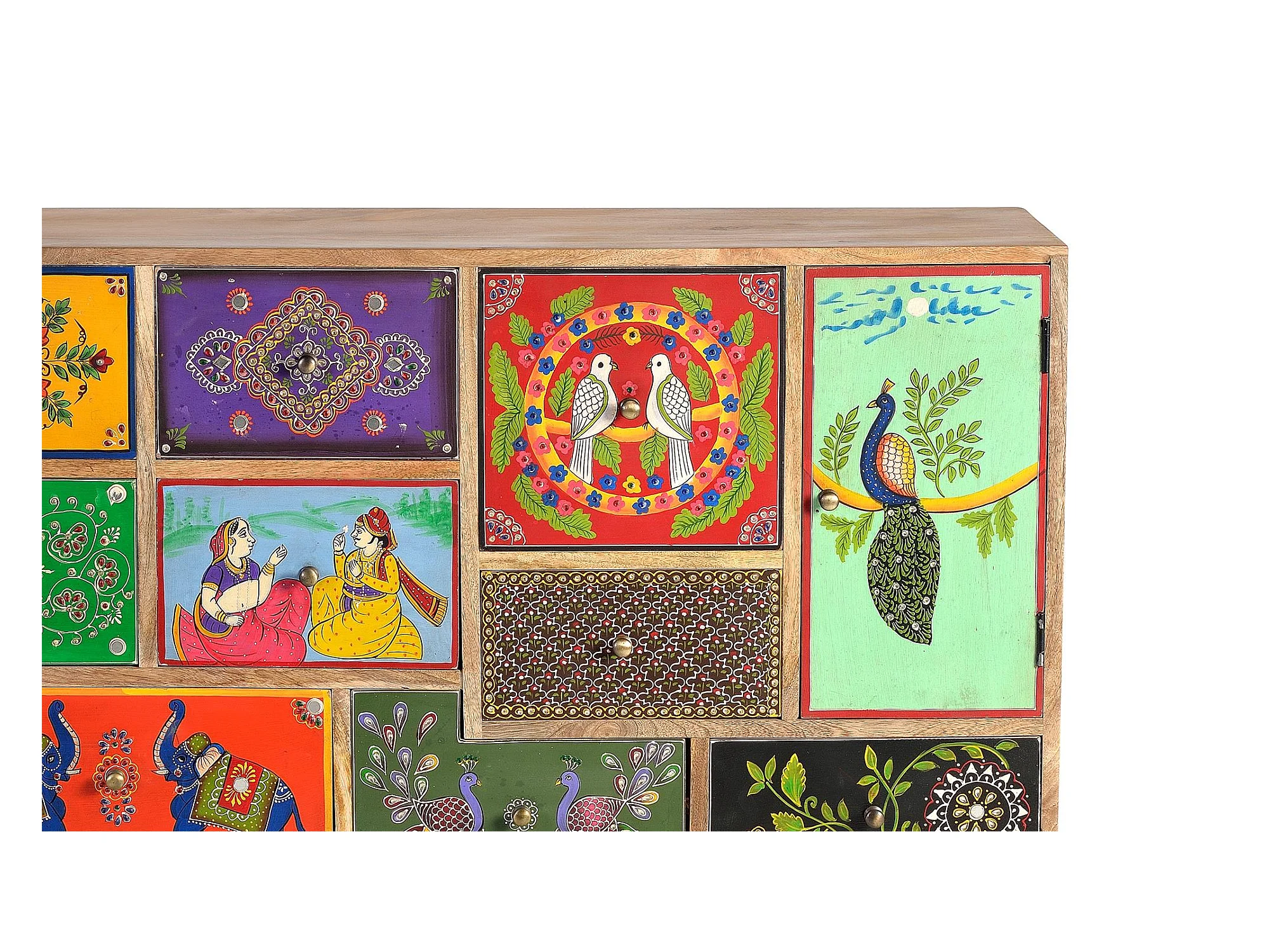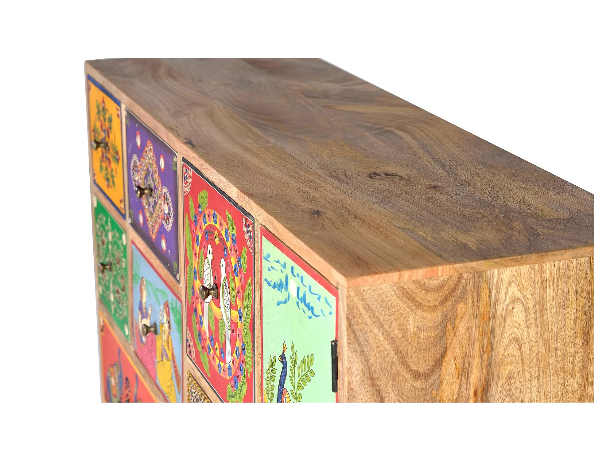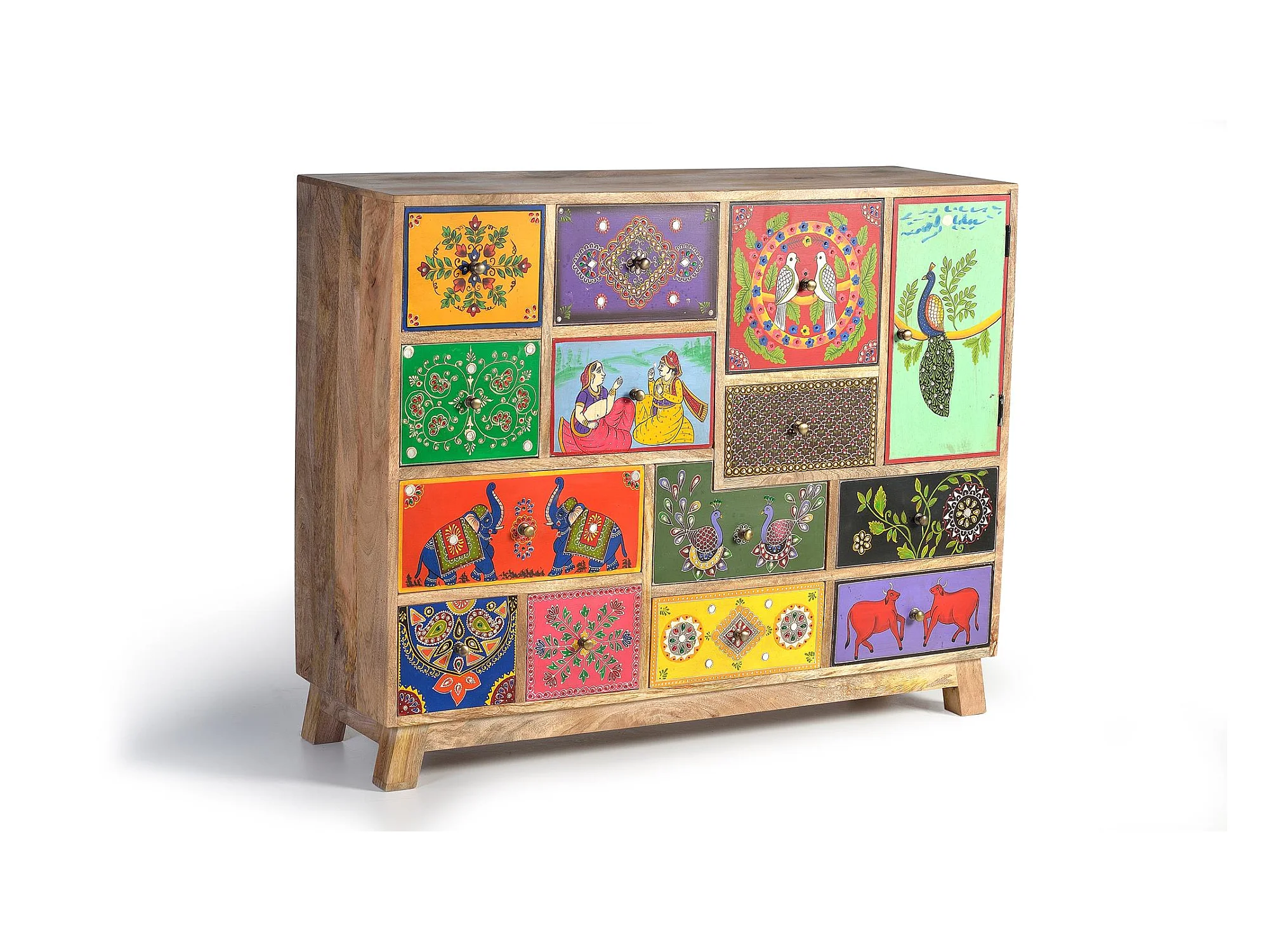 Commode en bois de manguier avec 6 tiroirs peints à la main