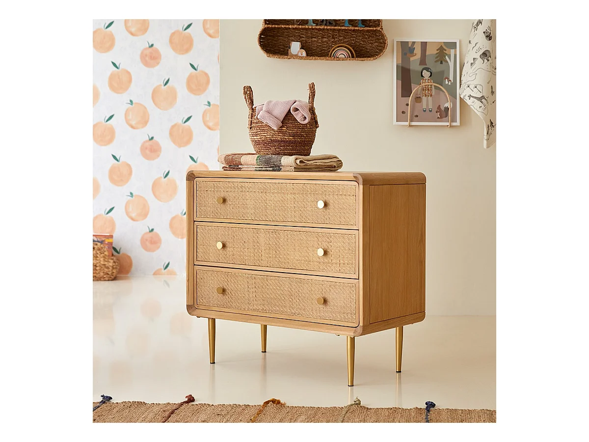 Commode enfant en bois de chêne 3 tiroirs Côme