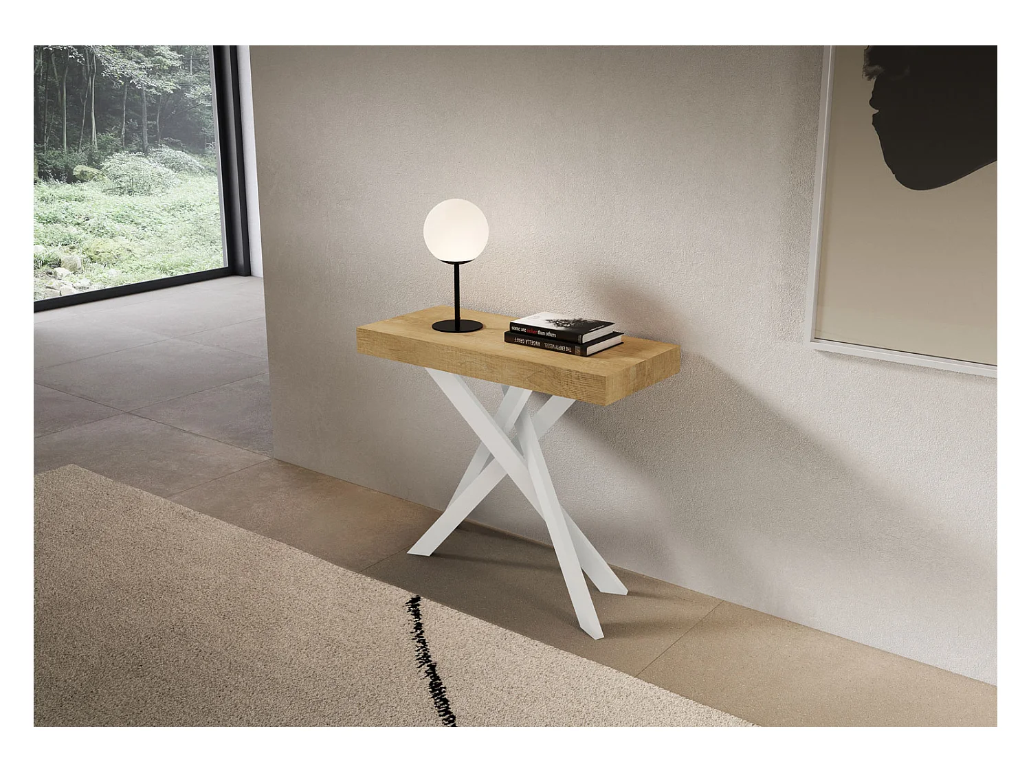 Console extensible 90x40/196 cm Saki Small chêne nature pieds blancs