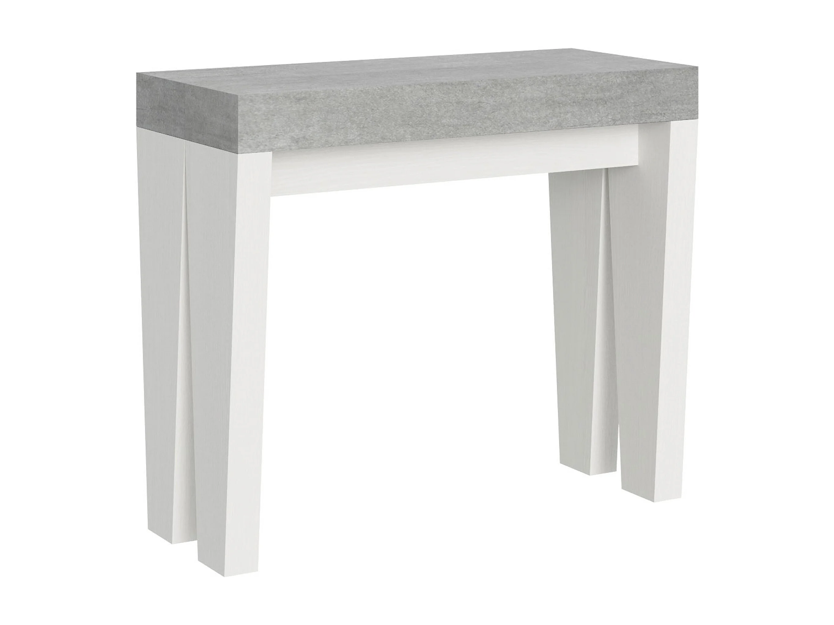 Console Extensible 90x40/196 cm Tecno Small gris béton pieds blancs