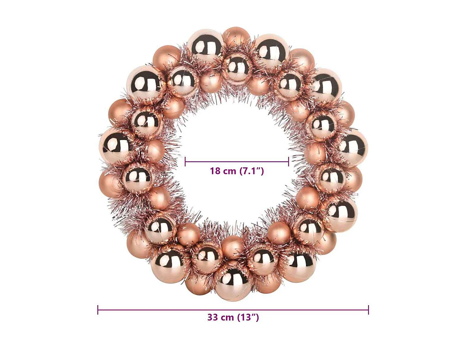Couronnes de Boules de Noël 2 pcs Rose doré 33 x 33 x 7 cm