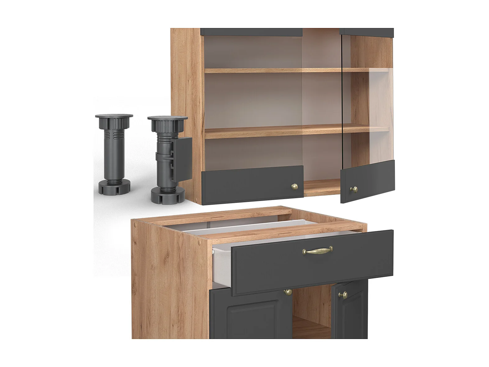 Cuisine anthracite campagne/chêne doré 140x60x81.6 fame-line
