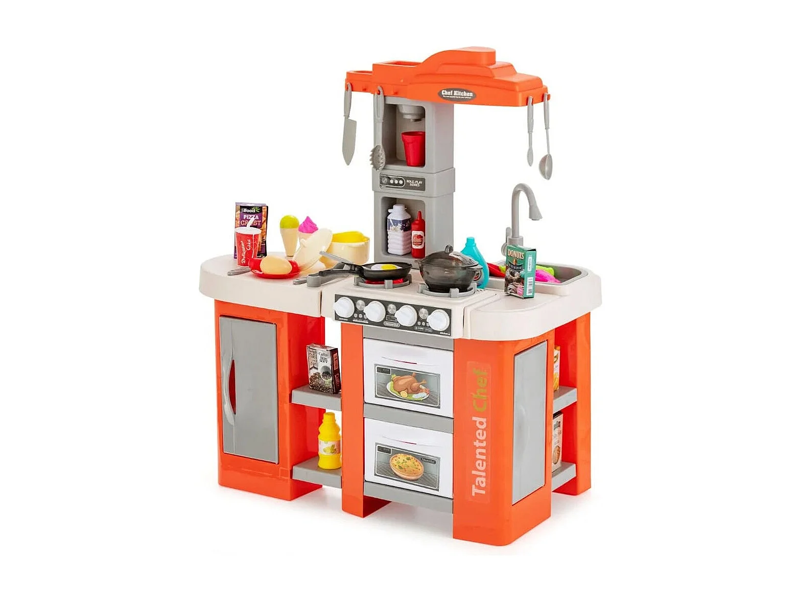 Cuisine de Jeu pour Enfants 67 Pièces avec Accessoires pour Aliments et Ustensiles Son Lumières Vapeur et Ebullition pour 3+ ans Orange/Bleu
