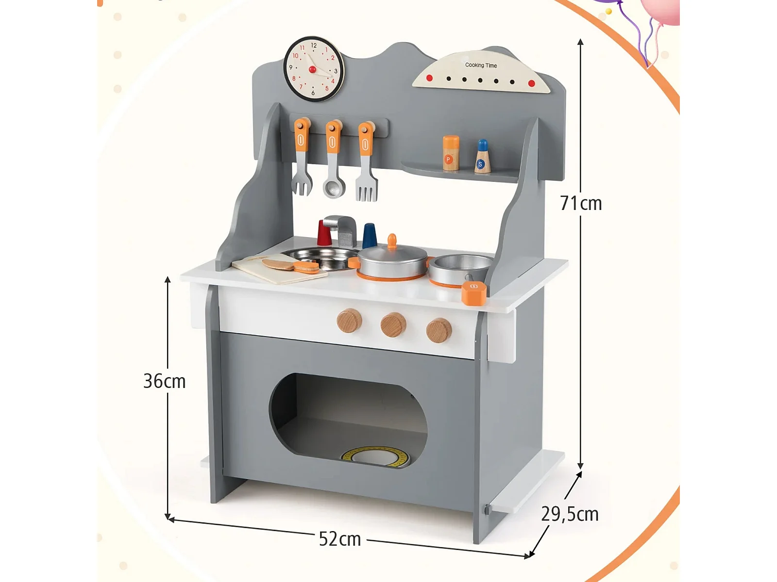 Cuisine de jeu pour enfants avec accessoires complets Cuisines de poupée avec horloge & cuisinière & étagère à épices Gris