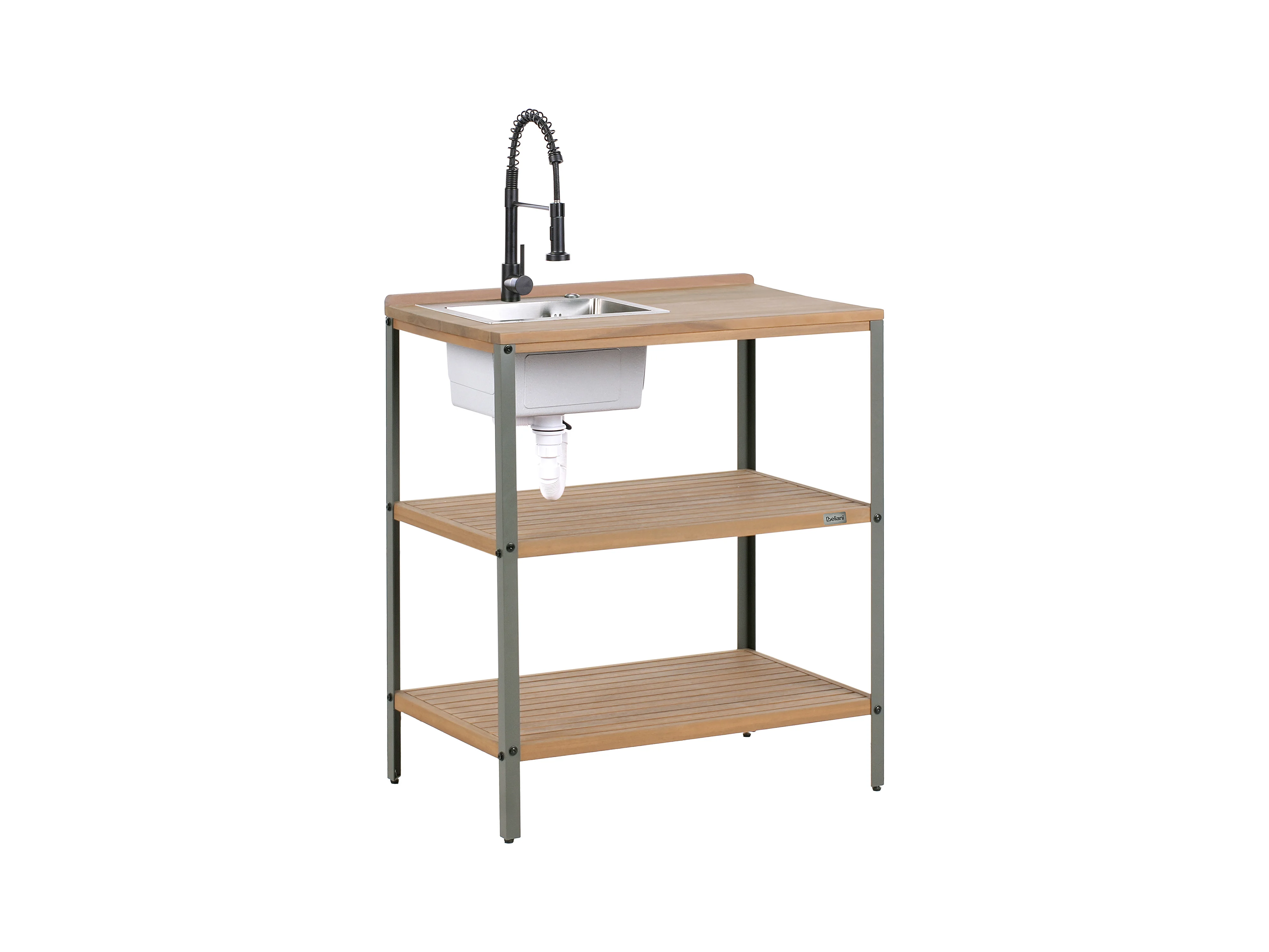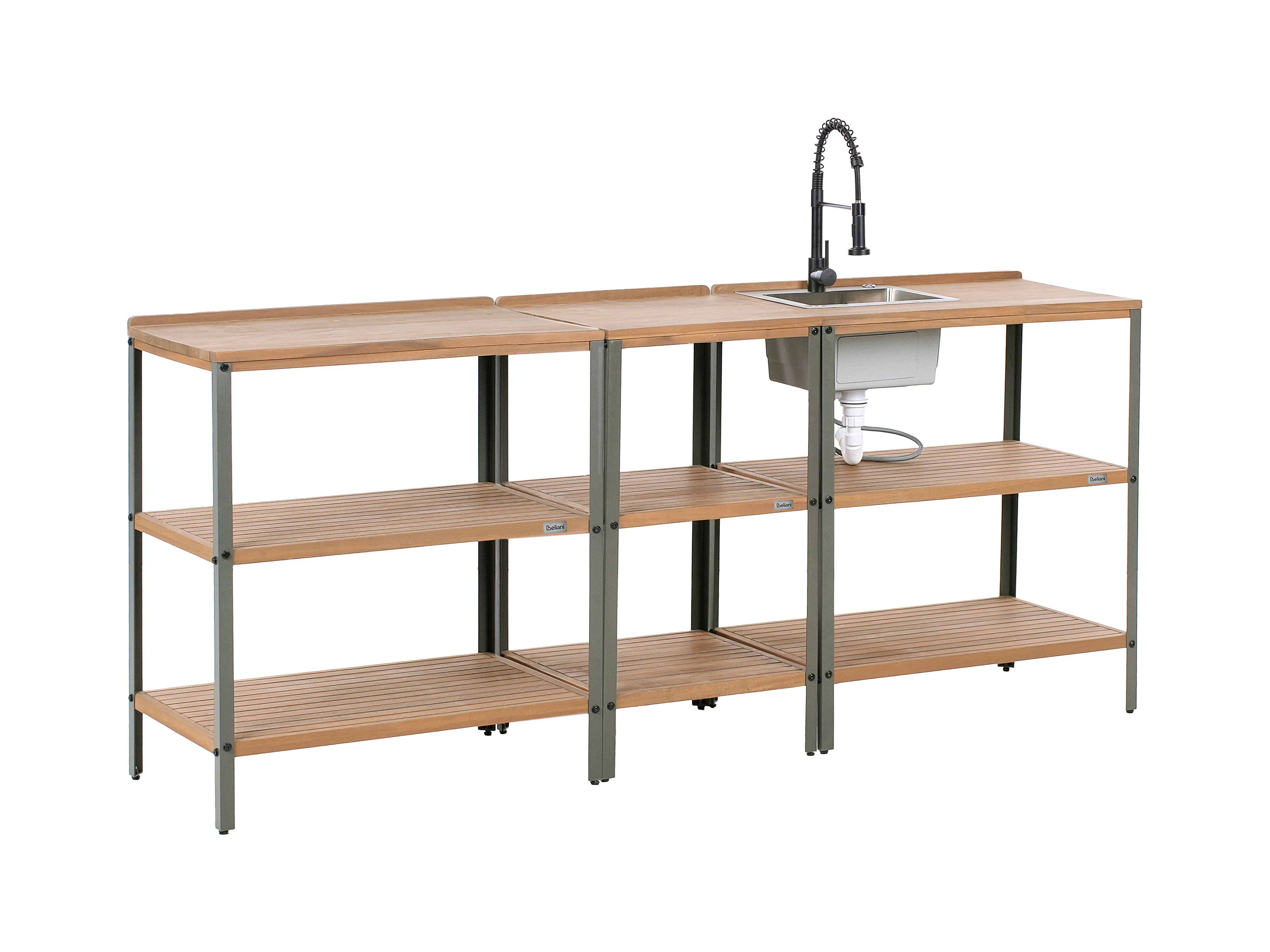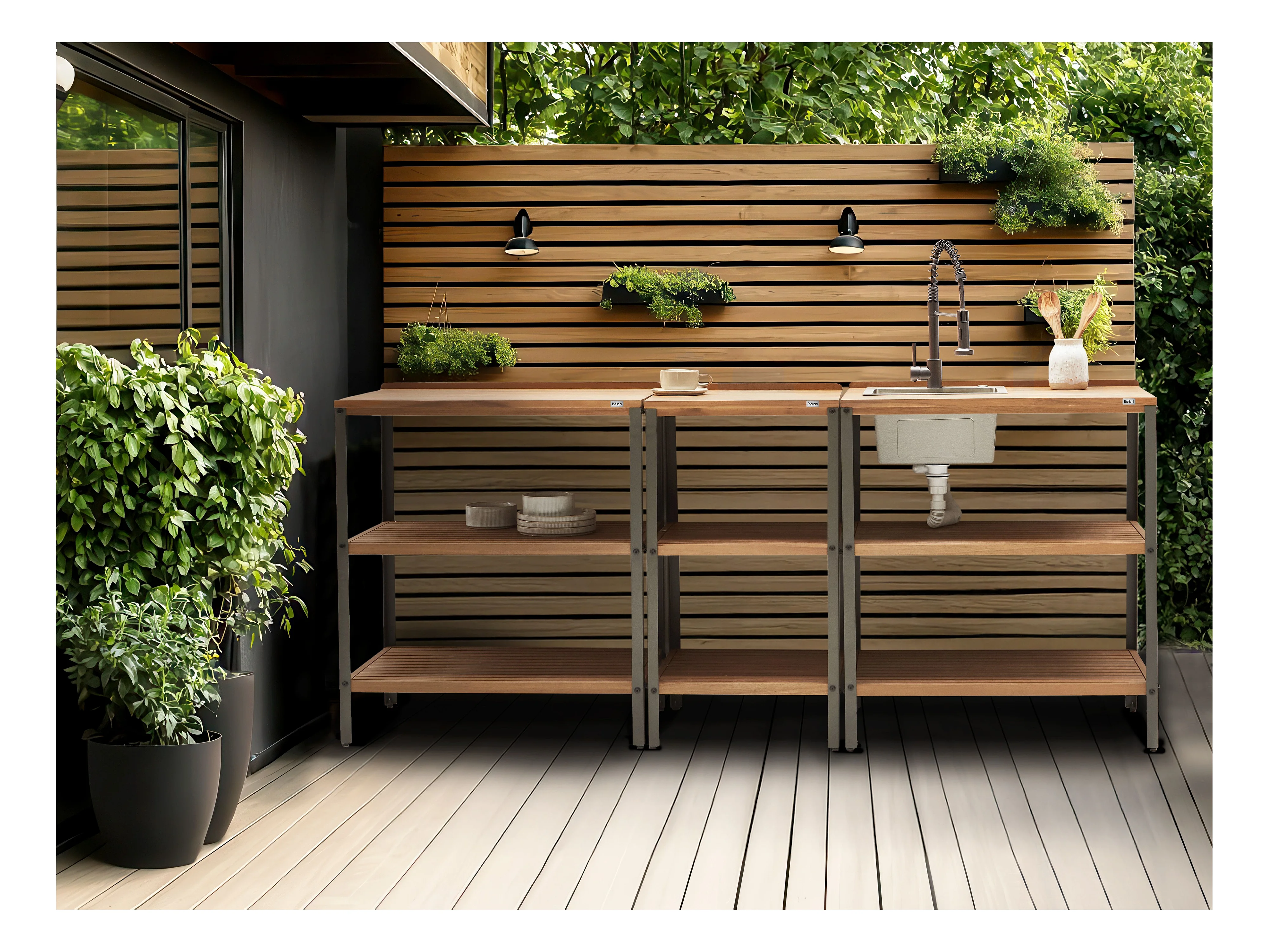 Cuisine d'extérieur 3 pièces avec évier IVREA Bois d'acacia certifié Marron/noir