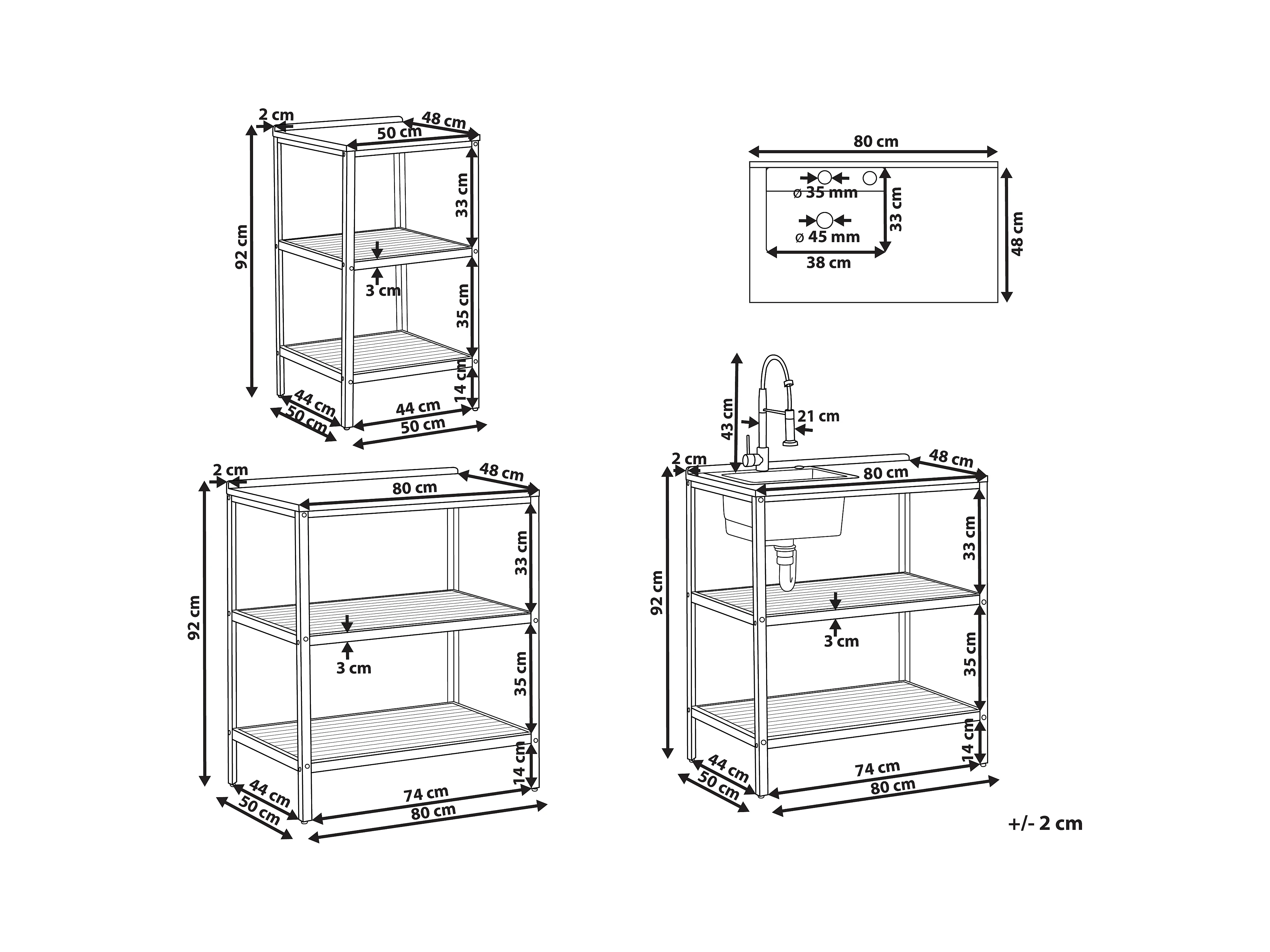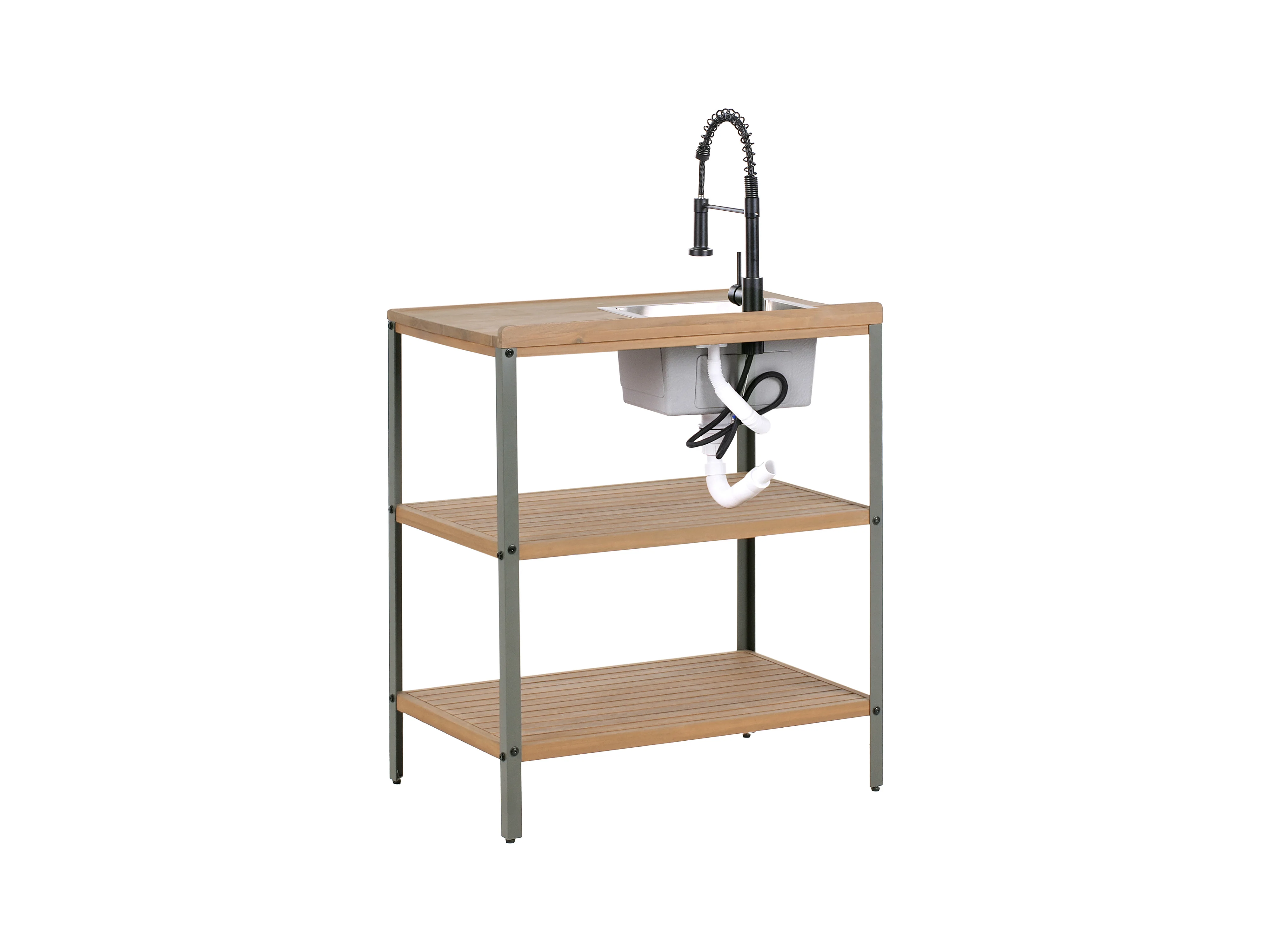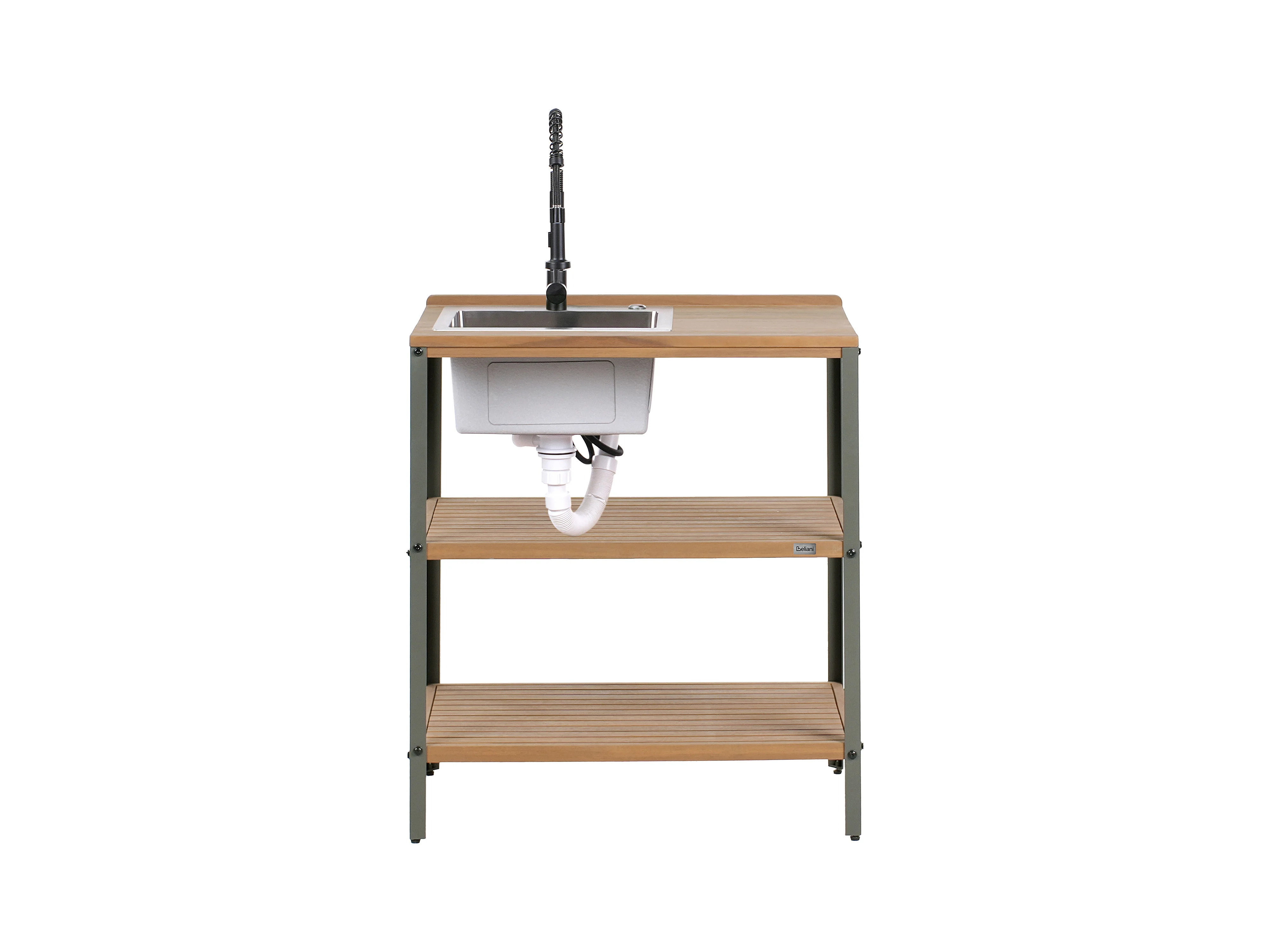 Cuisine d'extérieur 3 pièces avec évier IVREA Bois d'acacia certifié Marron/noir