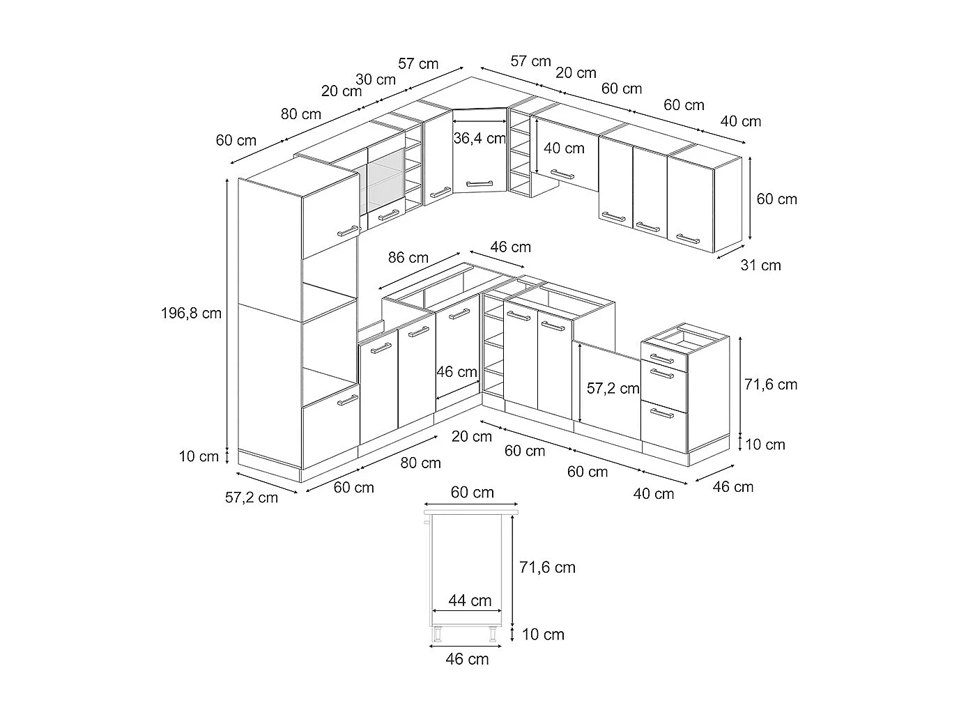 Ligne de cuisine artisan chêne/blanc 350x60x81.6 r-line