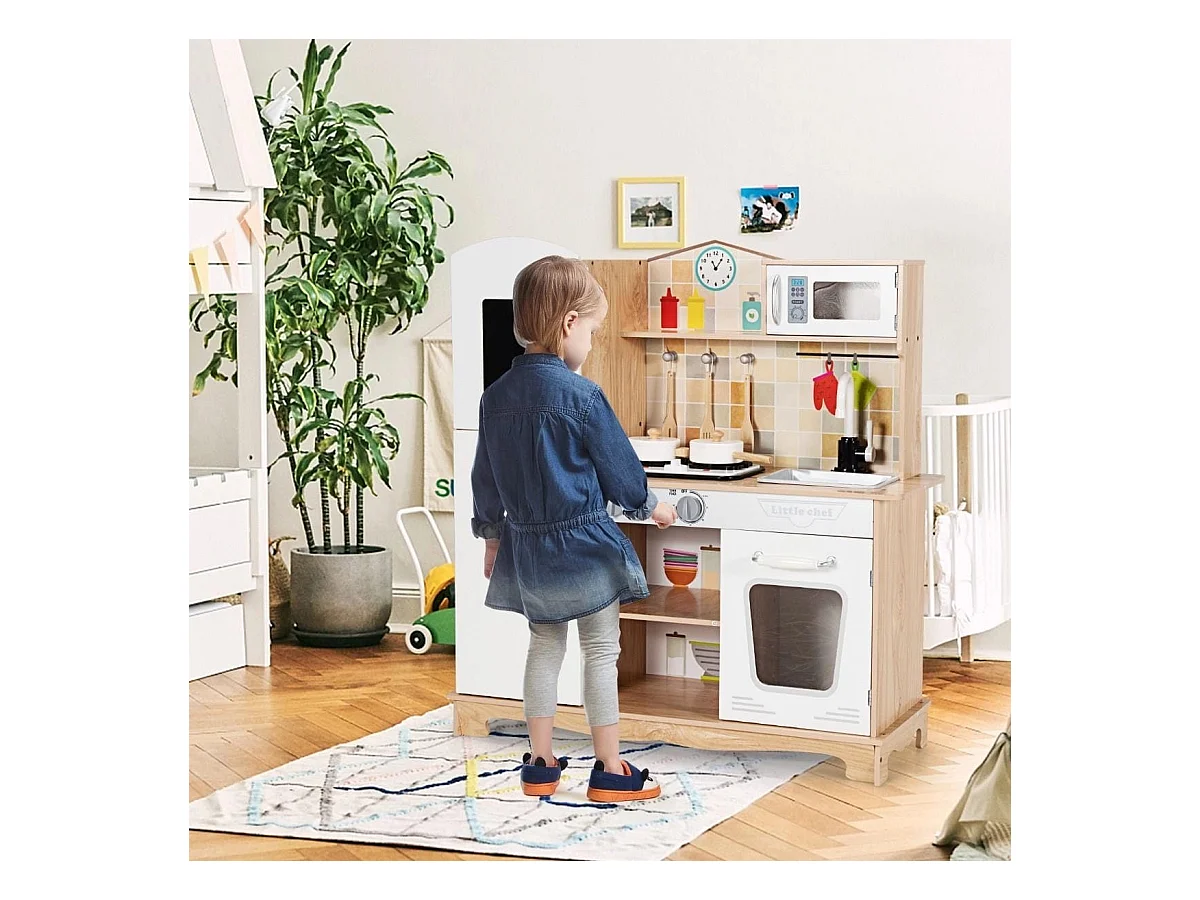Cuisine pour Enfants avec Four Micro-Ondes et Robinet 5 Accessoires Jouet d'Imitation pour Enfant de 3 à 7Ans