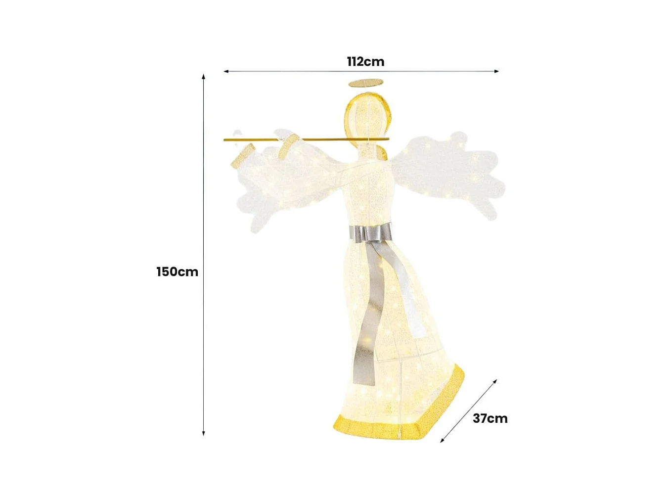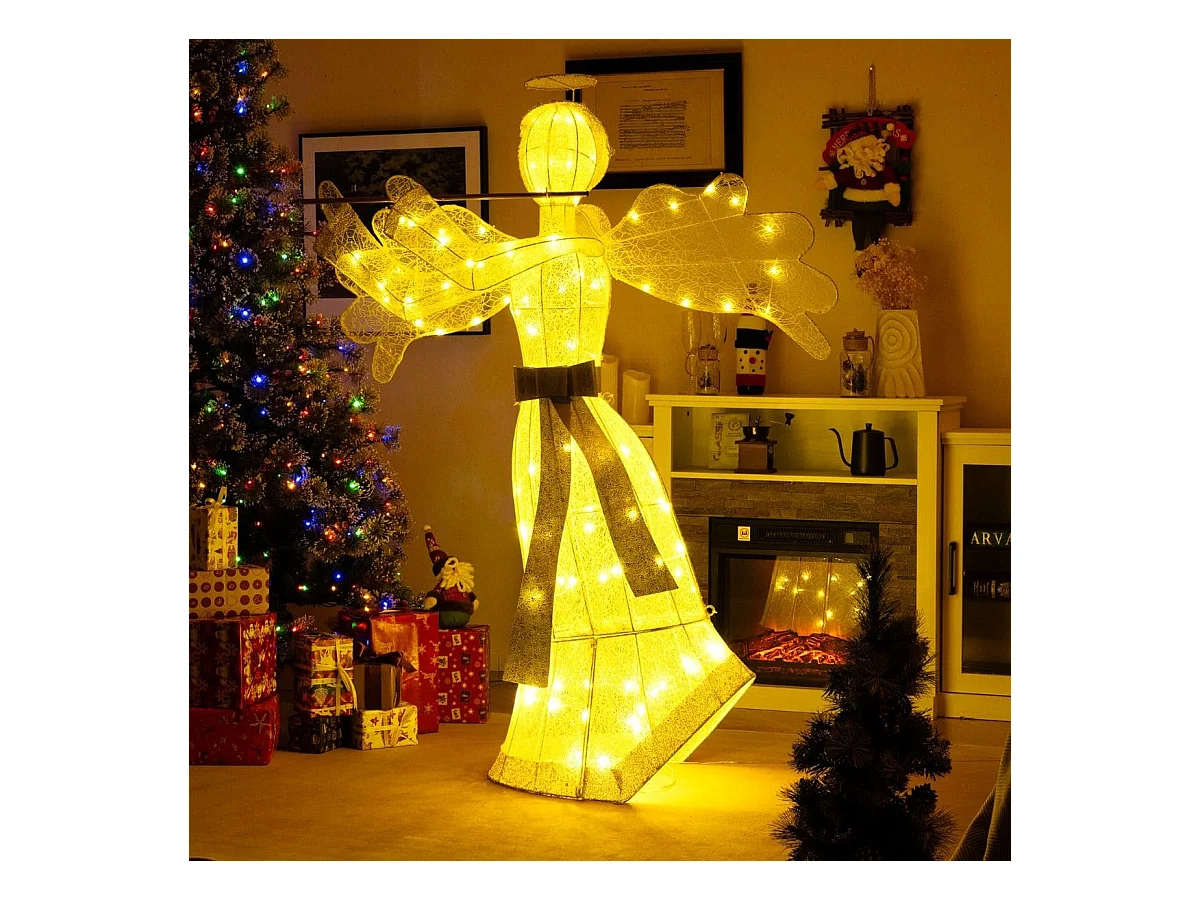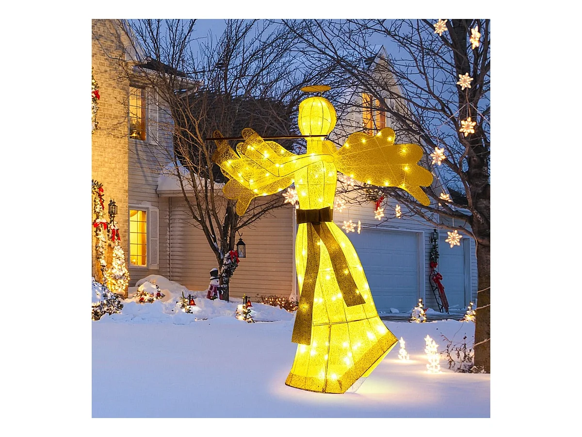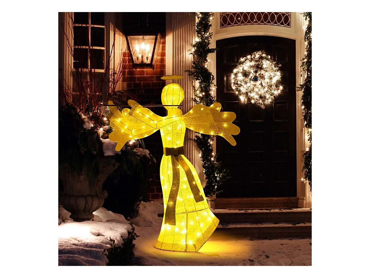 Décoration de Noël en Forme d'Ange Illuminé Décoration de Noël Artificielle 100 Lumières LED 4 Piquets 10 Attaches Zippées
