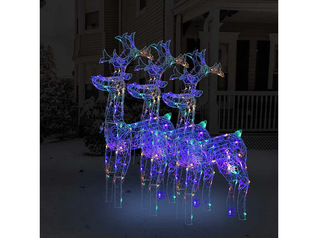 Rennes de Noël XXL Acrylique 250 LED 3 pcs 180 cm Multicolore