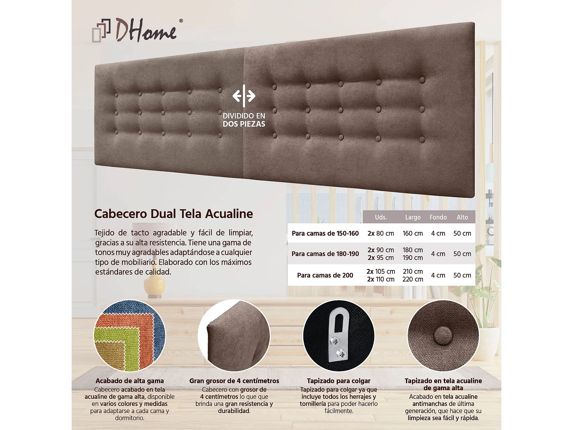DHOME Tête de Lit en Tissu ACUALINE avec 3 Rangées de Boutons Tête de Lit Capitonnée de Luxe (Marrón, 180cm (2 pièces))