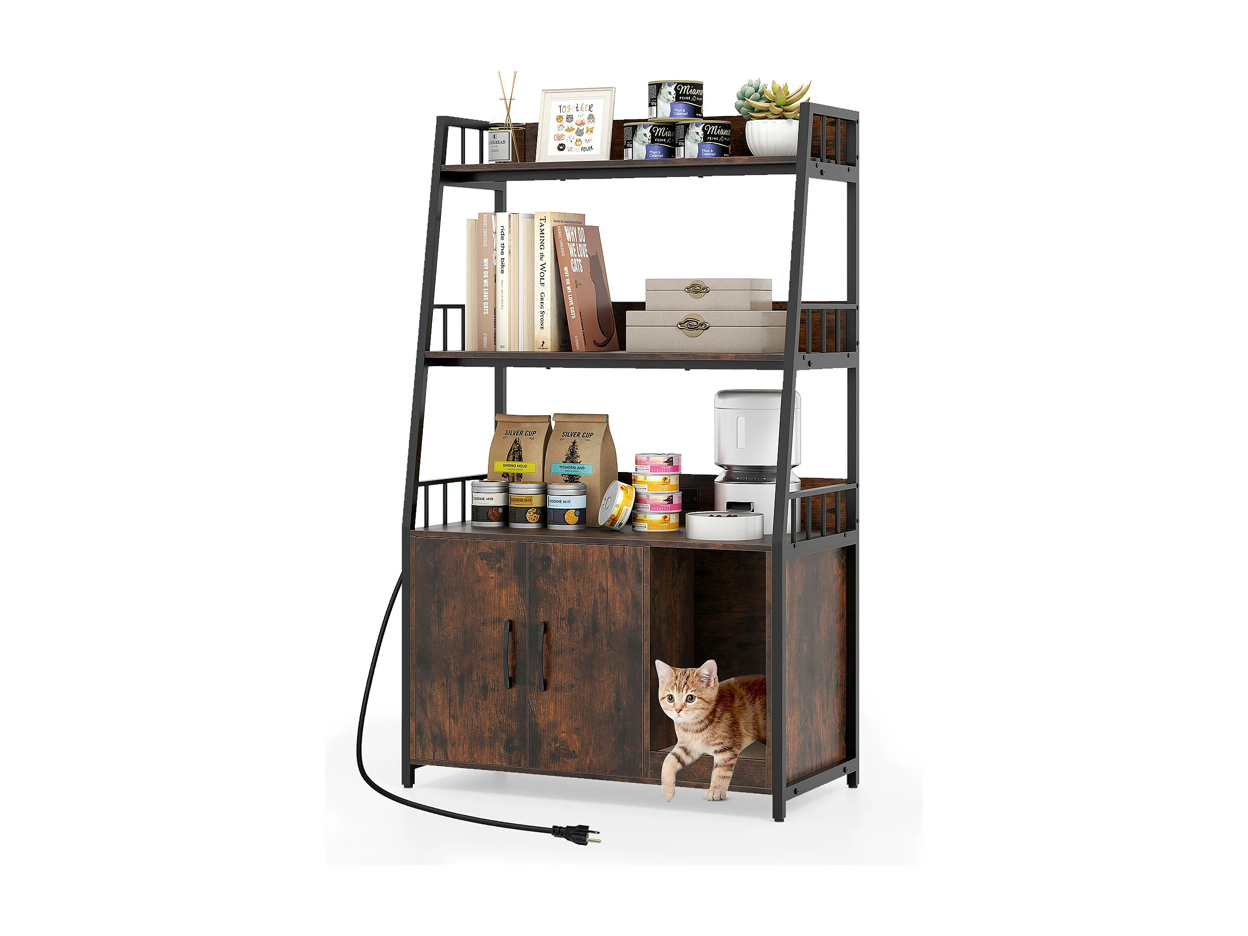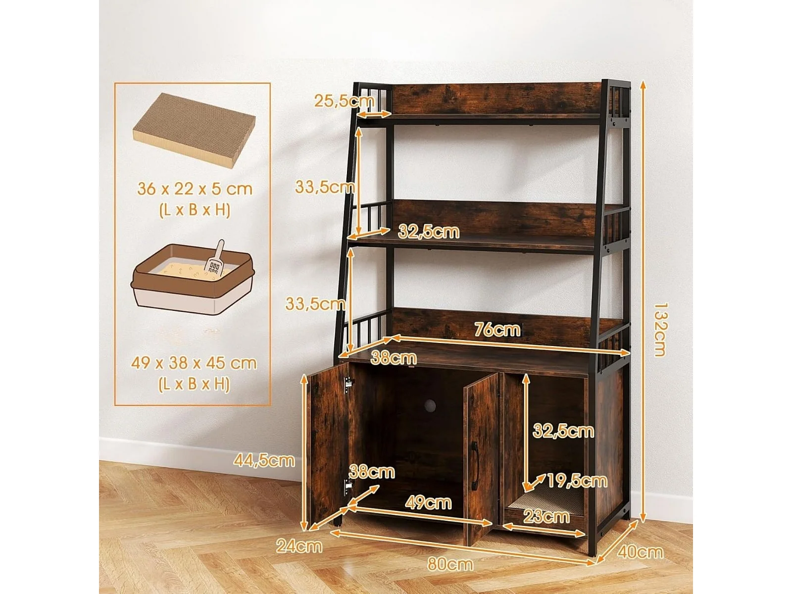 Enclos de Bac à Litière pour Chat avec Étagères de Rangement Grand Meuble de Toilettes Caché pour Chat avec Griffoir Brun Rustique