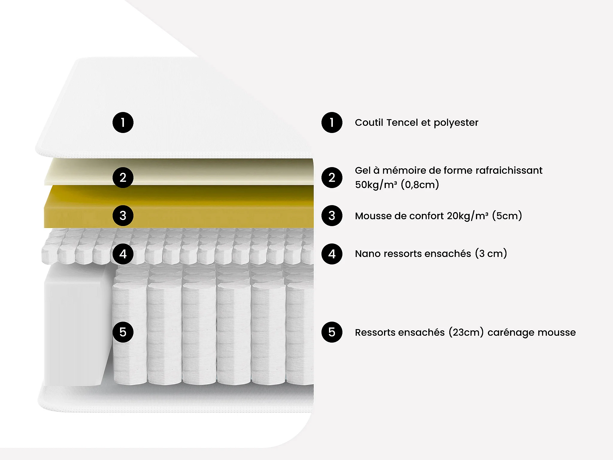 Ensemble 160 x 200 cm sommier coffre naturel clair + matelas hybride ressorts ensachés accueil nano ressorts + mémoire de forme ép.32cm - IPOH de YSMÉE