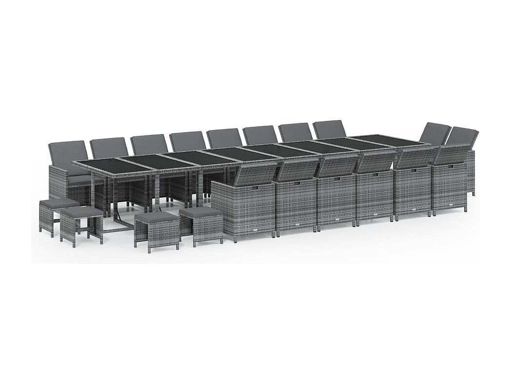 Ensemble à manger de jardin coussins 21 pcs Gris Résine tressée