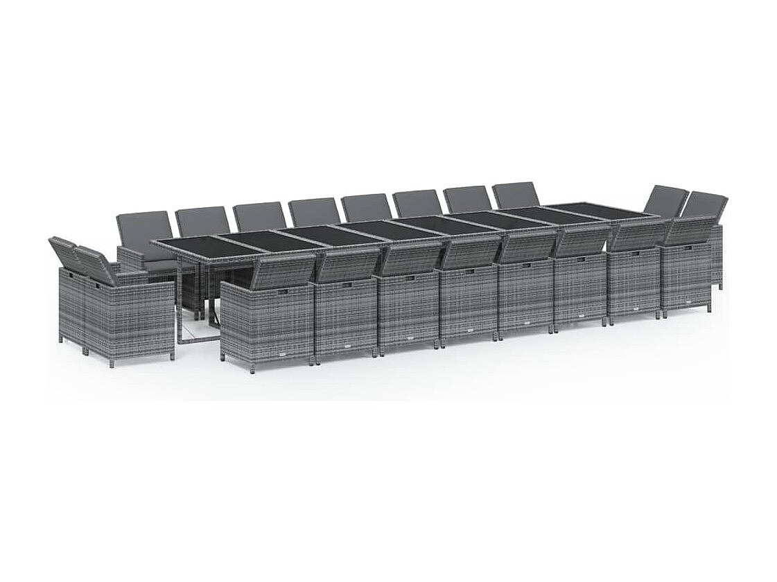 Ensemble à dîner de jardin coussins 21 pcs Gris Résine tressée